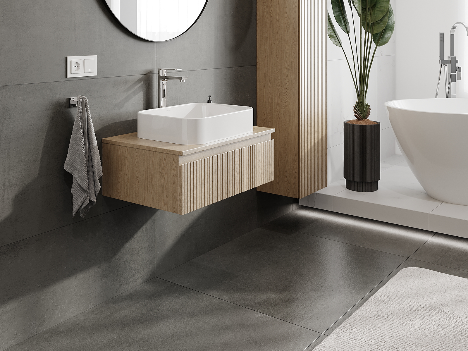 Kiinteiden materiaalien, tarkan työn ja nykyaikaisten teknologisten ratkaisujen ansiosta tuote tarjoaa käyttömukavuutta, kestävyyttä kosteutta ja lämpötilan muutoksia vastaan sekä elegantin ulkonäön, joka sopii erilaisiin kylpyhuonetyyleihin.