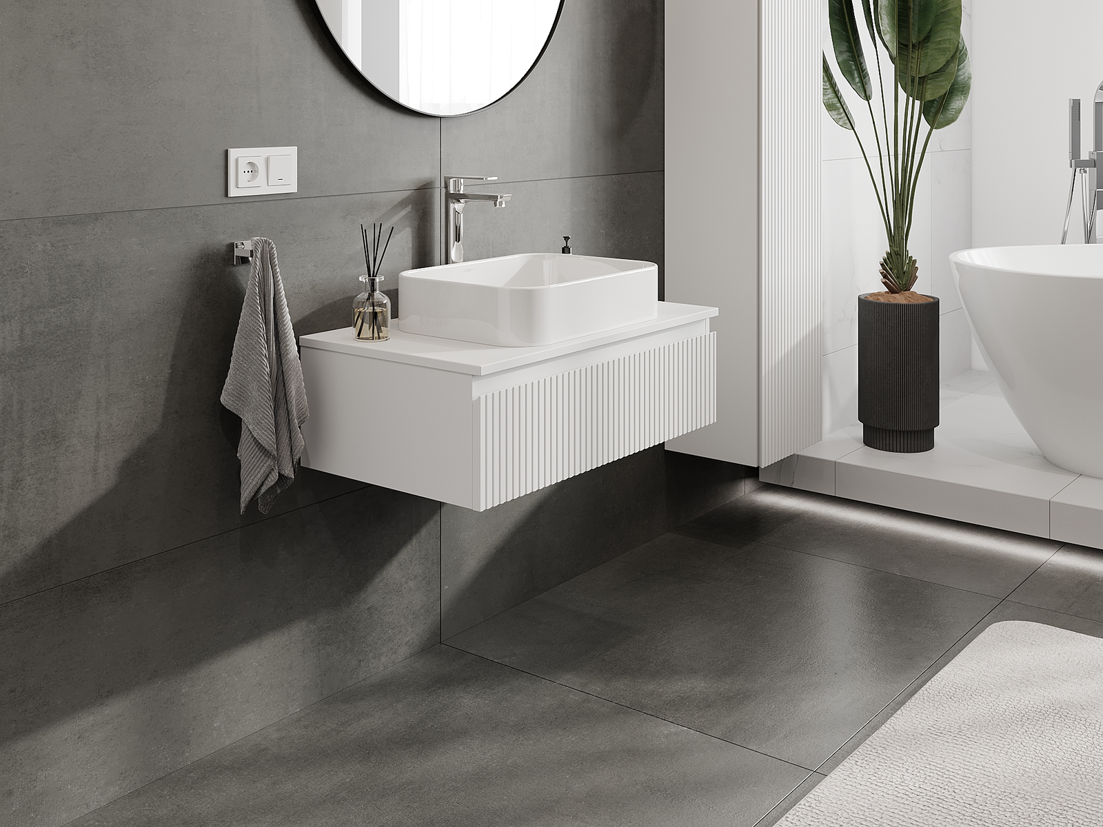 Mexen Rivel kylpyhuoneen allaskaappi 80 cm, 1 laatikko, uritettu, valkoinen matta - 91A20-08023-1-BF01