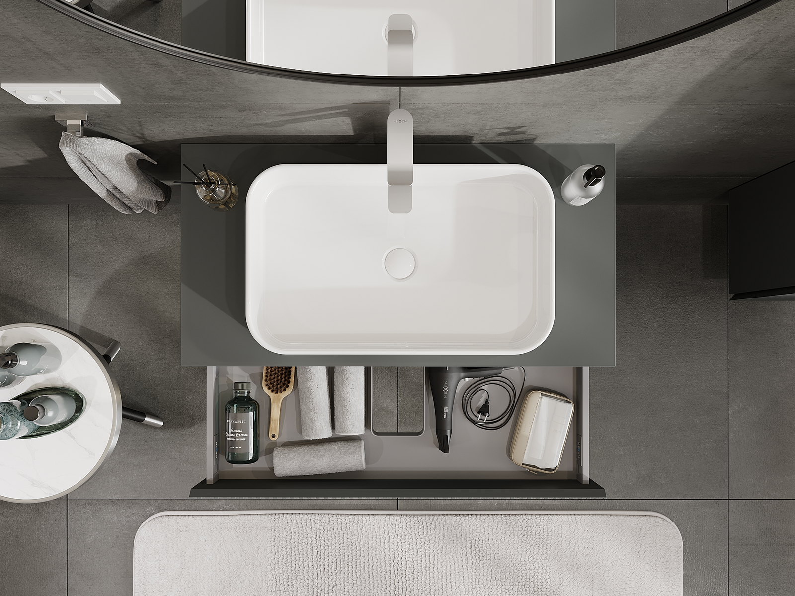 Mexen Rivel 90 cm pesuallaskaappi, 1 laatikko, uurrettu, grafiitti matta - 91A20-09023-1-BF66