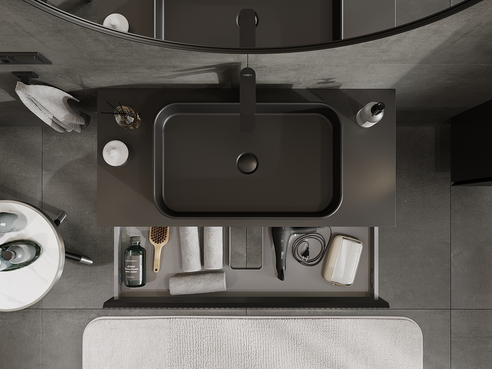 Mexen Rivel kylpyhuoneen pesualtaan alakaappi 100 cm, 1 laatikko, uritettu, musta mattapintainen - 91A20-10023-1-BF71