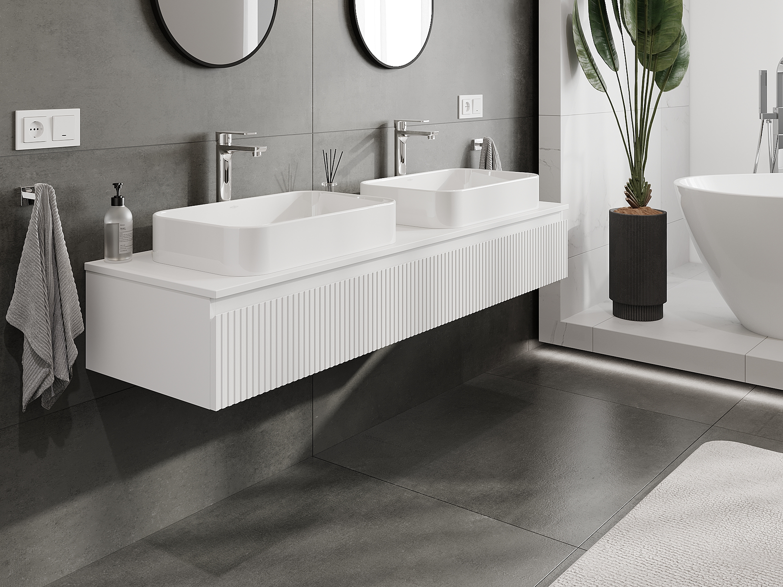 Modulaariset kylpyhuonekalusteemme voidaan yhdistää eri väriyhdistelminä, mikä mahdollistaa täydellisen personoinnin. Voit valita sekä ulkonäön että yksittäisten elementtien toiminnot, mikä mahdollistaa huonekalujen mukauttamisen omien tyylillisten ja käyttöön liittyvien mieltymysten mukaan.