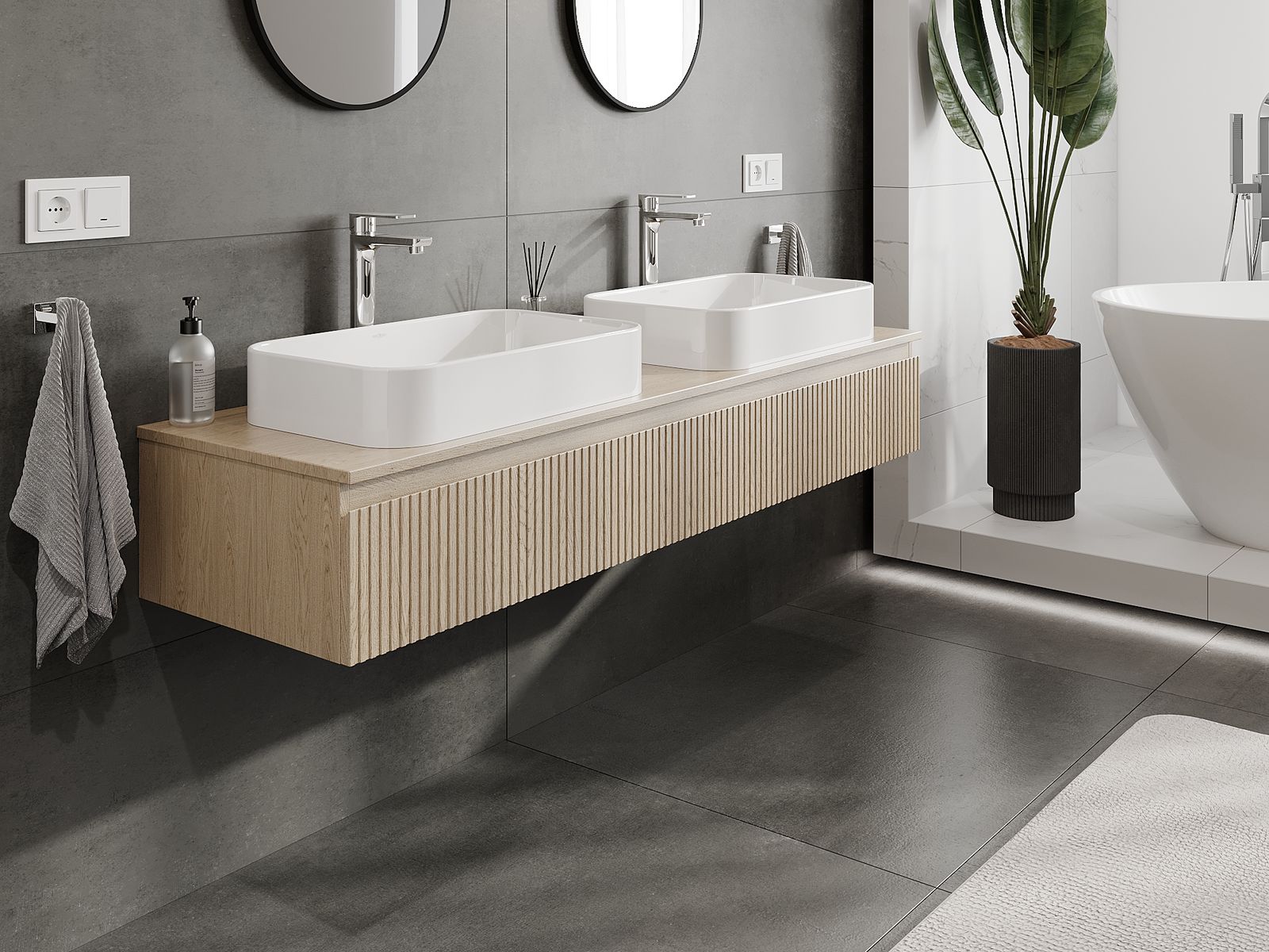 Kiinteiden materiaalien, tarkan työn ja nykyaikaisten teknologisten ratkaisujen ansiosta tuote tarjoaa käyttömukavuutta, kestävyyttä kosteutta ja lämpötilan muutoksia vastaan sekä elegantin ulkonäön, joka sopii erilaisiin kylpyhuonetyyleihin.
