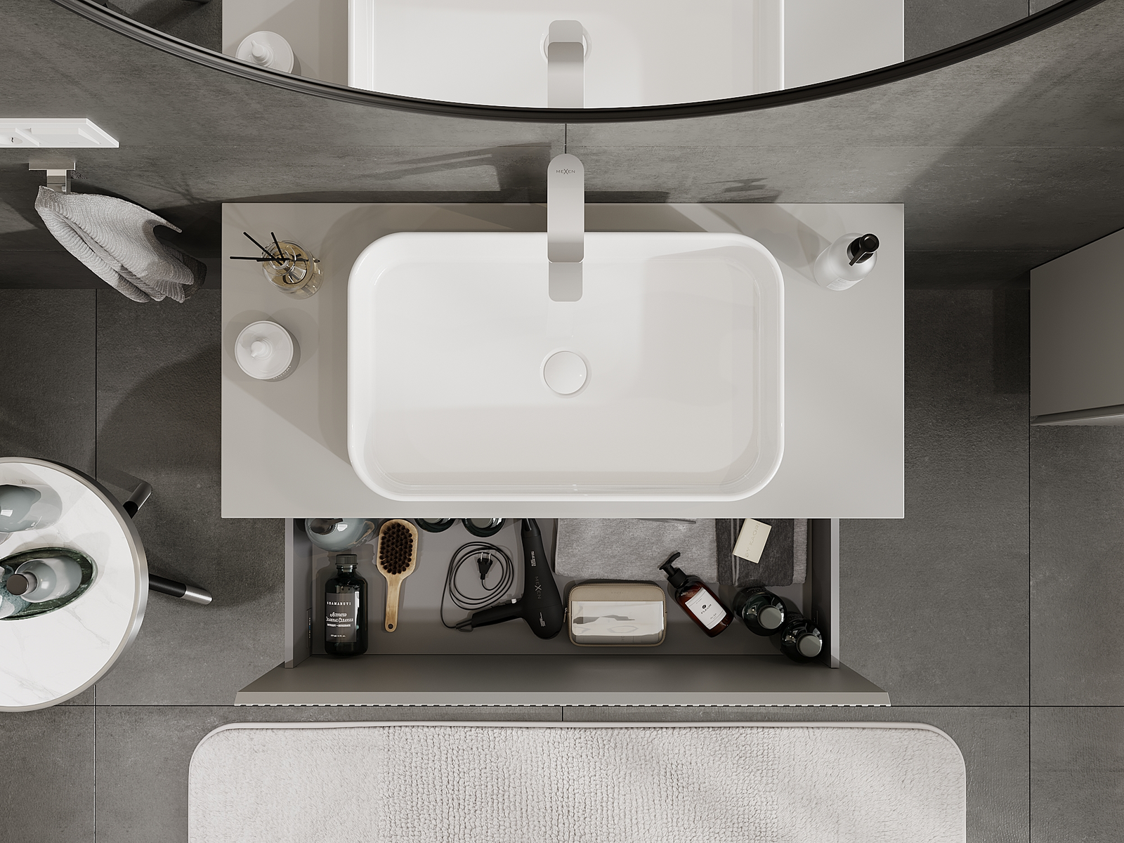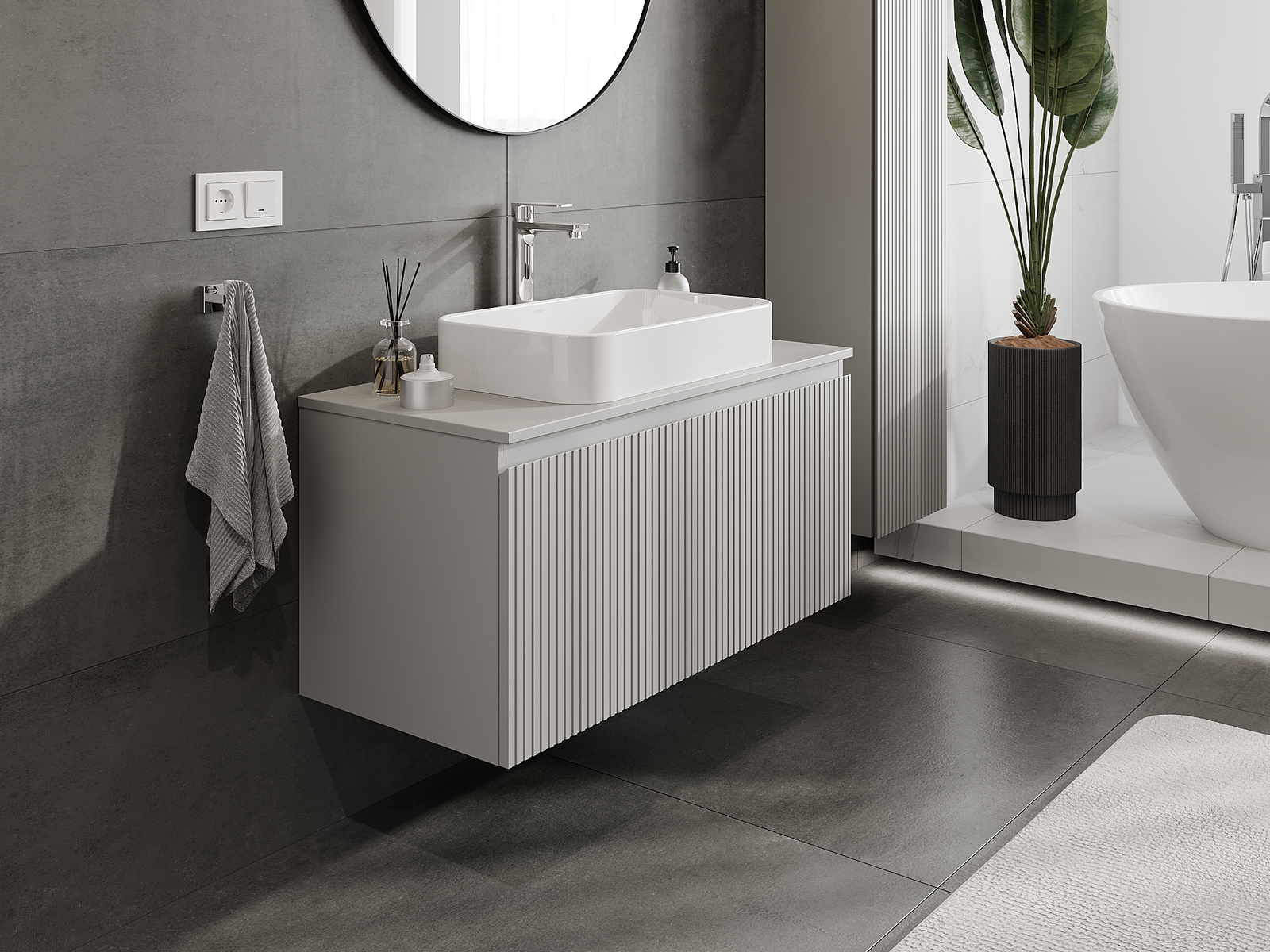 Mexen Rivel 100 cm leveä kylpyhuonekaappi alapesualtaalle, 1 laatikko, uurrettu, harmaa matta - 91A20-10047-1-BF62