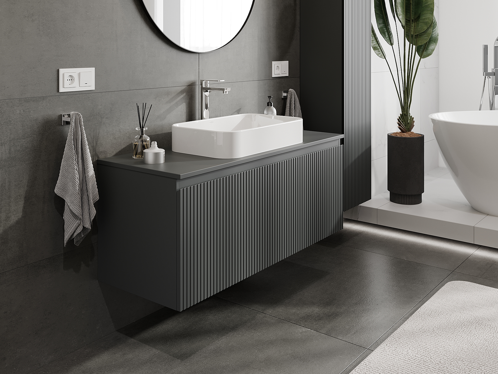 Mexen Rivel kylpyhuoneen altaan alakaappi 120 cm, 1 laatikko, uurrettu, grafiitti matta - 91A20-12047-1-BF66