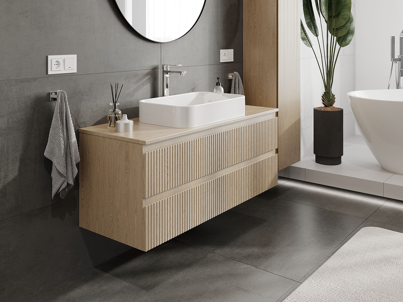 Modulaariset kylpyhuonekalusteemme voidaan yhdistää eri väriyhdistelminä, mikä mahdollistaa täydellisen personoinnin. Voit valita sekä ulkonäön että yksittäisten elementtien toiminnot, mikä mahdollistaa huonekalujen mukauttamisen omien tyylillisten ja käyttöön liittyvien mieltymysten mukaan.