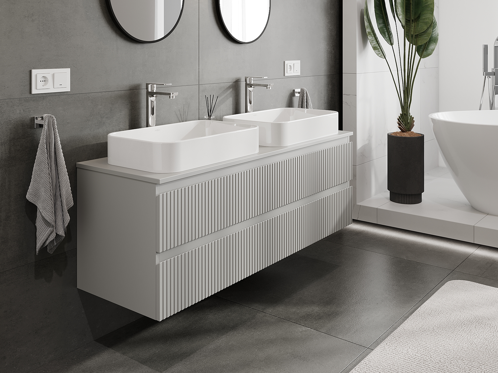 Kiinteiden materiaalien, tarkan työn ja nykyaikaisten teknologisten ratkaisujen ansiosta tuote tarjoaa käyttömukavuutta, kestävyyttä kosteutta ja lämpötilan muutoksia vastaan sekä elegantin ulkonäön, joka sopii erilaisiin kylpyhuonetyyleihin.