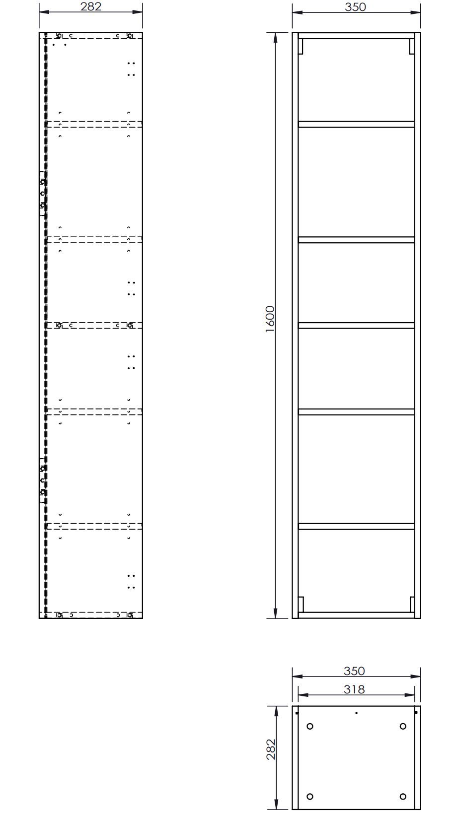 5 hyllyä (1 kiinteä keskimmäinen hylly ja 4 säädettävää hyllyä)