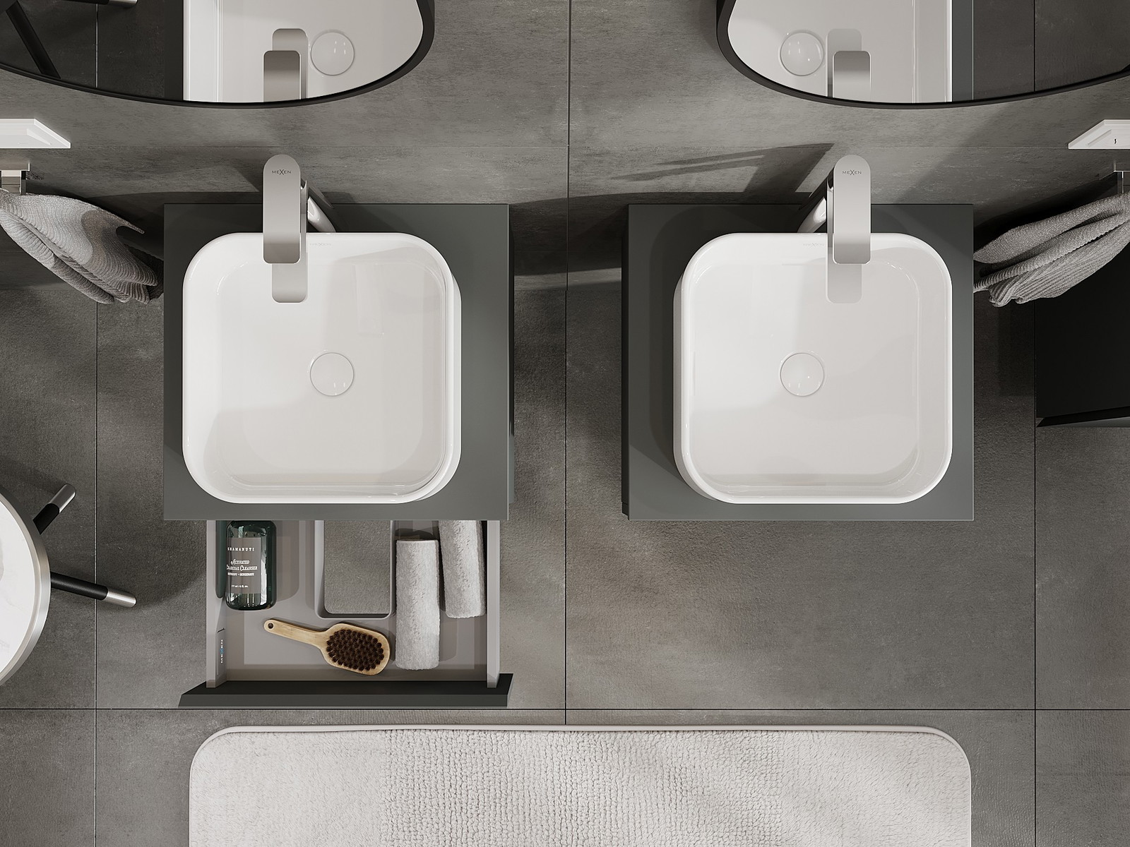 Modulaariset kylpyhuonekalusteemme voidaan yhdistää eri väriyhdistelminä, mikä mahdollistaa täydellisen personoinnin. Voit valita sekä ulkonäön että yksittäisten elementtien toiminnot, mikä mahdollistaa huonekalujen mukauttamisen omien tyylillisten ja käyttöön liittyvien mieltymysten mukaan.
