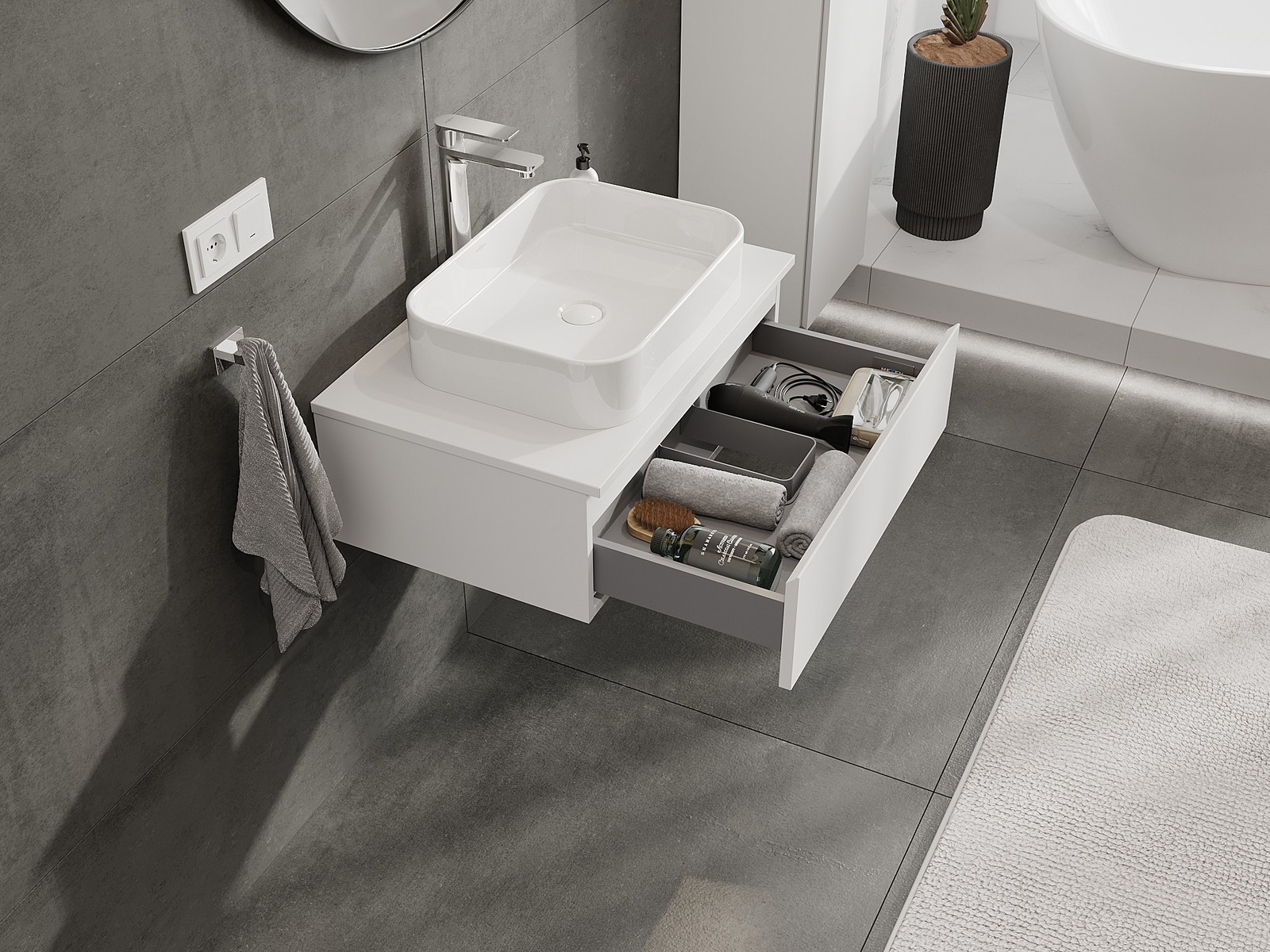 Modulaariset kylpyhuonekalusteemme voidaan yhdistää eri väriyhdistelminä, mikä mahdollistaa täydellisen personoinnin. Voit valita sekä ulkonäön että yksittäisten elementtien toiminnot, mikä mahdollistaa huonekalujen mukauttamisen omien tyylillisten ja käyttöön liittyvien mieltymysten mukaan.