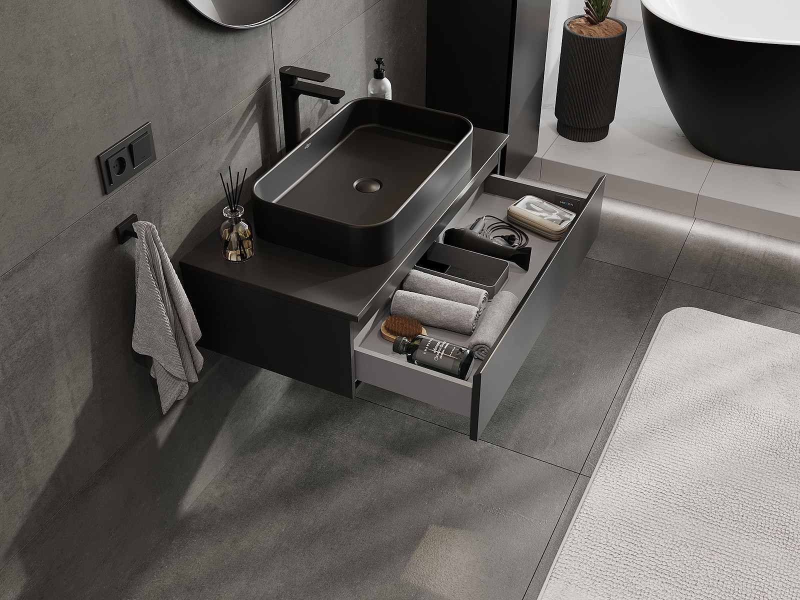 Kiinteiden materiaalien, tarkan työn ja nykyaikaisten teknologisten ratkaisujen ansiosta tuote tarjoaa käyttömukavuutta, kestävyyttä kosteutta ja lämpötilan muutoksia vastaan sekä elegantin ulkonäön, joka sopii erilaisiin kylpyhuonetyyleihin.