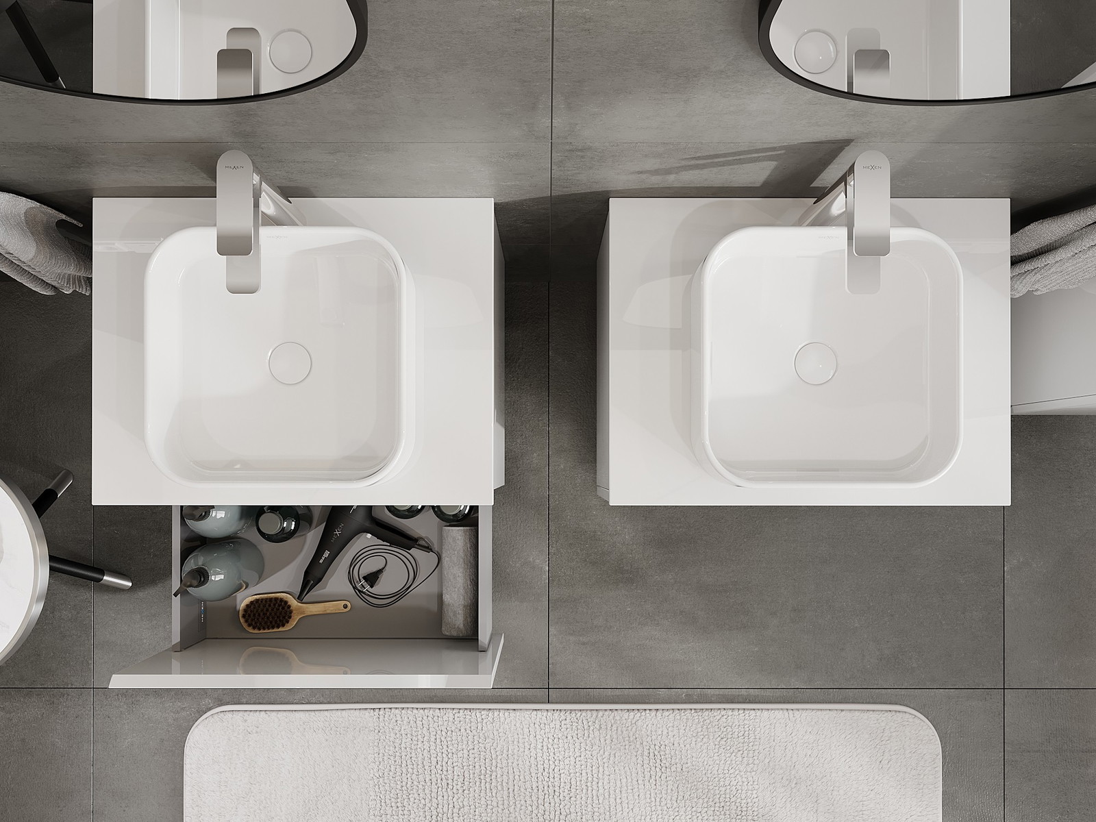 Mexen Orio kylpyhuonekaappi pesualtaan alle 60 cm, pöytälevy, 1 laatikko, kiiltävä valkoinen - 91A10-06047-1-BFC00
