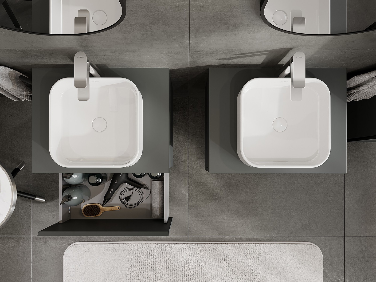 Mexen Orio kylpyhuoneen pesuallaskaappi 60 cm tasolla, 1 laatikko, grafiitinharmaa matta - 91A10-06047-1-BFC66