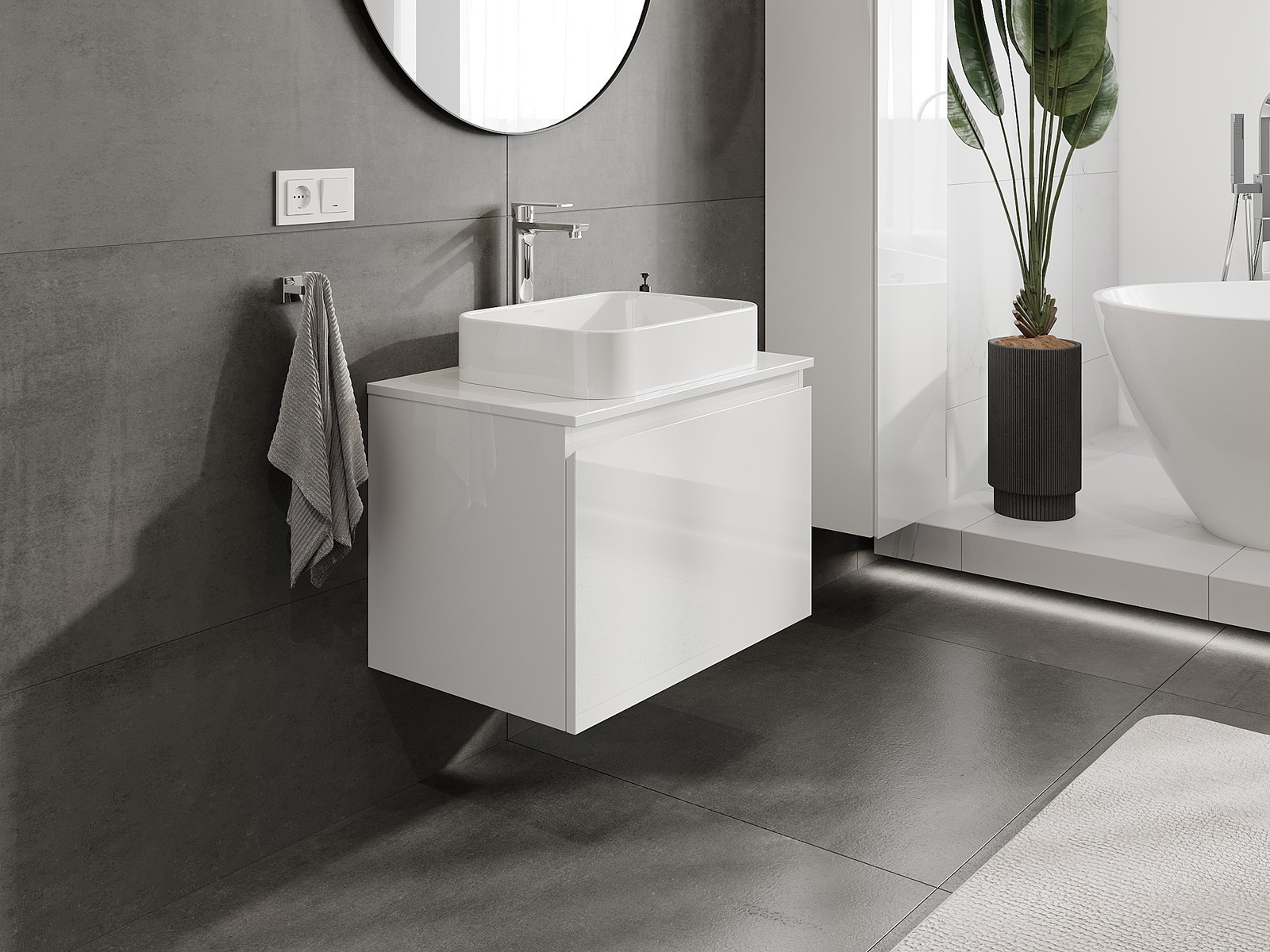 Mexen Orio kylpyhuonekaappi pesualtaan alle 70 cm, tasolla, 1 laatikko, valkoinen kiiltävä - 91A10-07047-1-BFC00