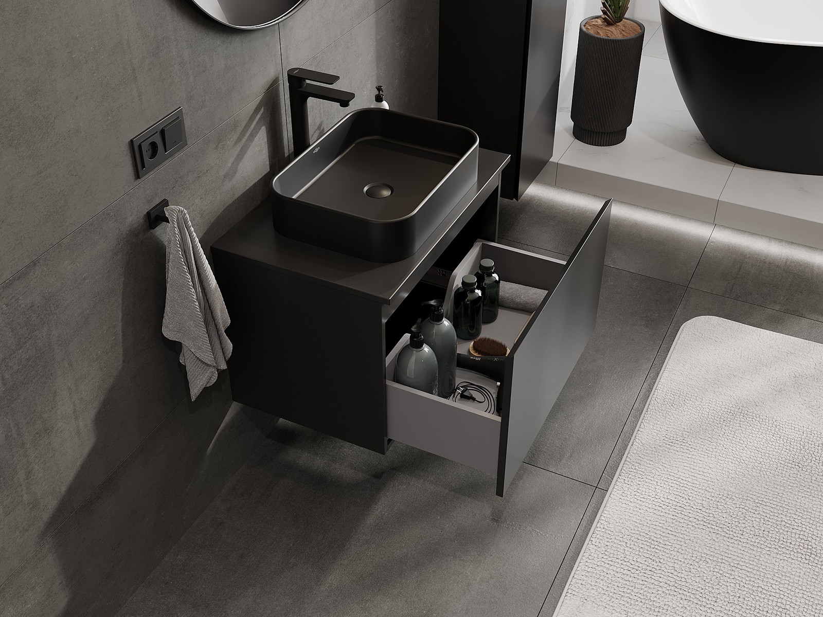 Kiinteiden materiaalien, tarkan työn ja nykyaikaisten teknologisten ratkaisujen ansiosta tuote tarjoaa käyttömukavuutta, kestävyyttä kosteutta ja lämpötilan muutoksia vastaan sekä elegantin ulkonäön, joka sopii erilaisiin kylpyhuonetyyleihin.