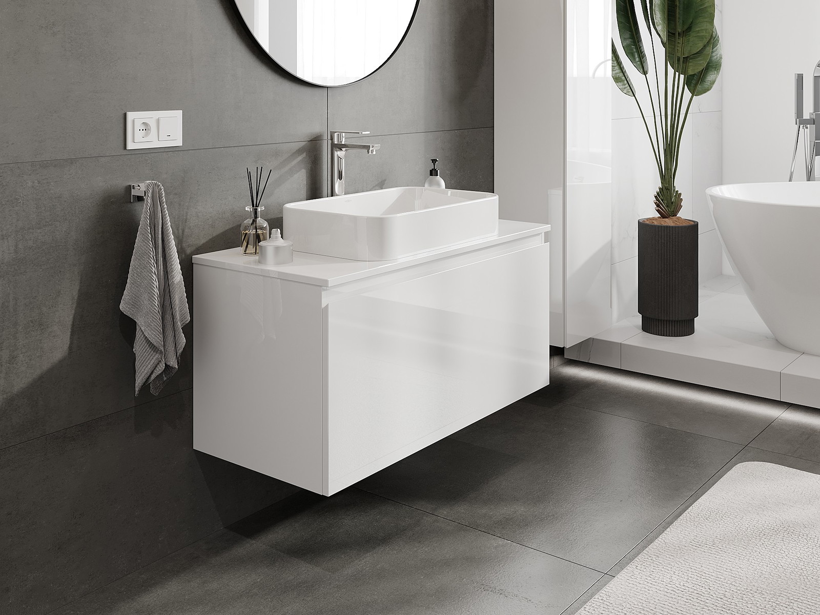 Mexen Orio 100 cm:n allaskaappi työtasolla, 1 laatikko, kiiltävä valkoinen - 91A10-10047-1-BFC00
