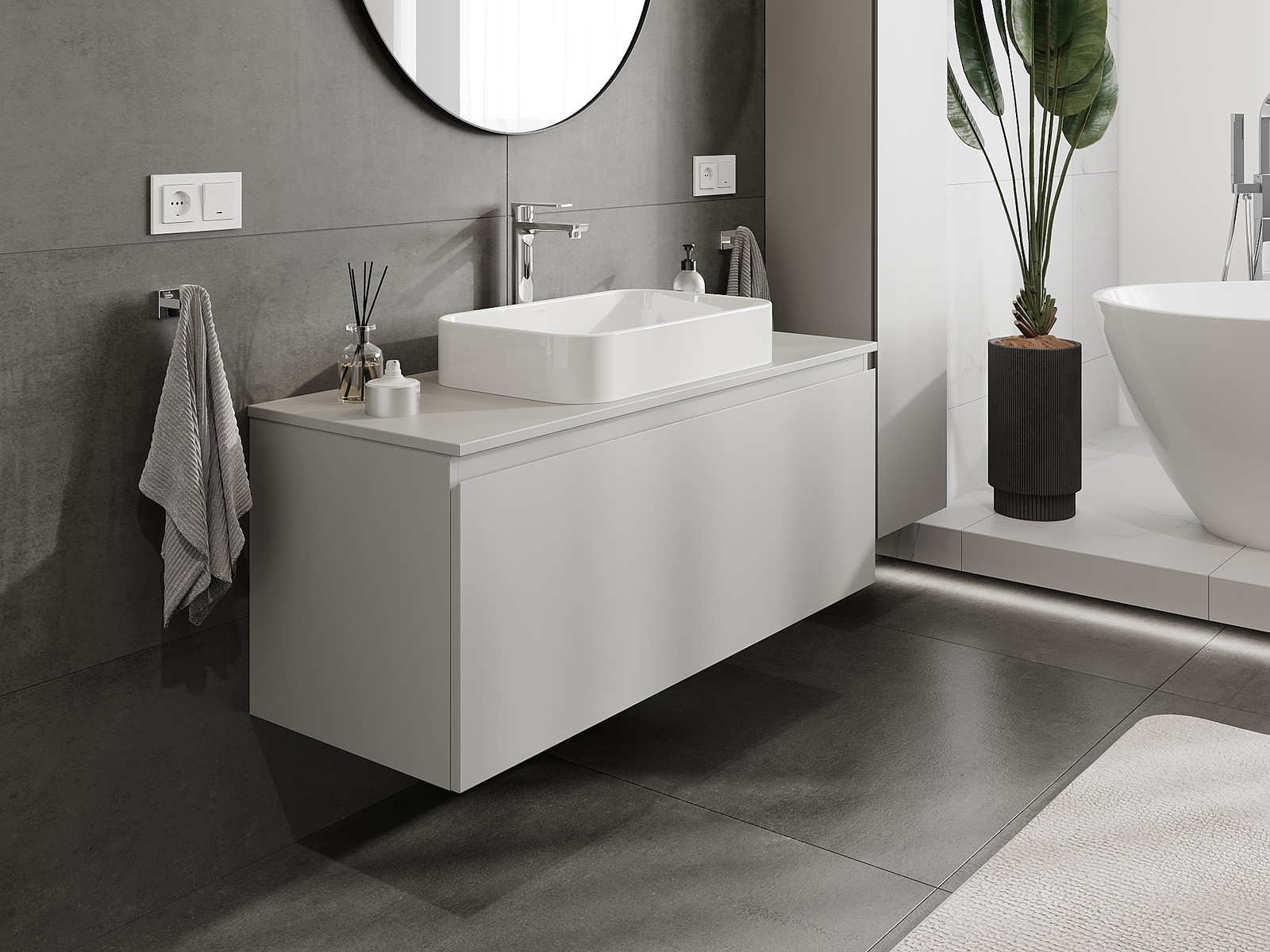 Mexen Orio 120 cm kylpyhuoneen allaskaappi, jossa on työtaso, 1 laatikko, harmaa matta - 91A10-12047-1-BFC62