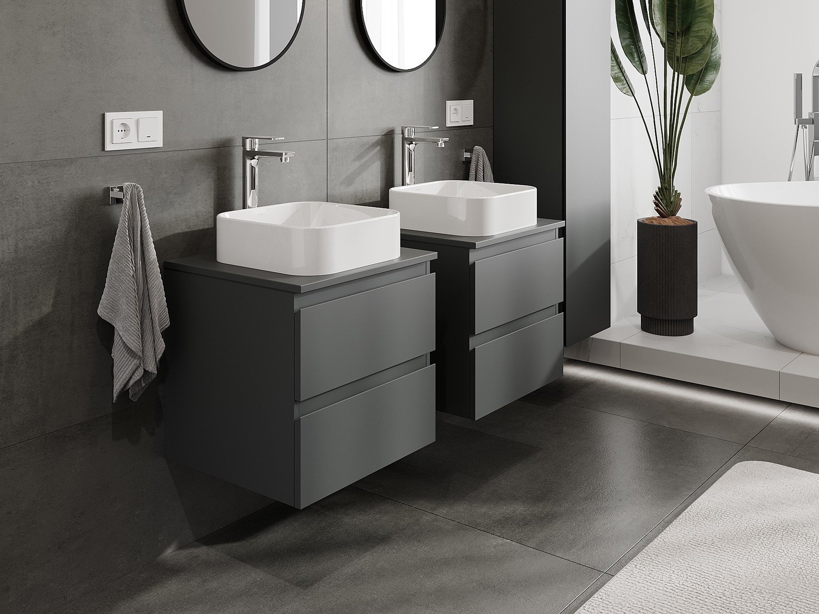 Modulaariset kylpyhuonekalusteemme voidaan yhdistää eri väriyhdistelminä, mikä mahdollistaa täydellisen personoinnin. Voit valita sekä ulkonäön että yksittäisten elementtien toiminnot, mikä mahdollistaa huonekalujen mukauttamisen omien tyylillisten ja käyttöön liittyvien mieltymysten mukaan.