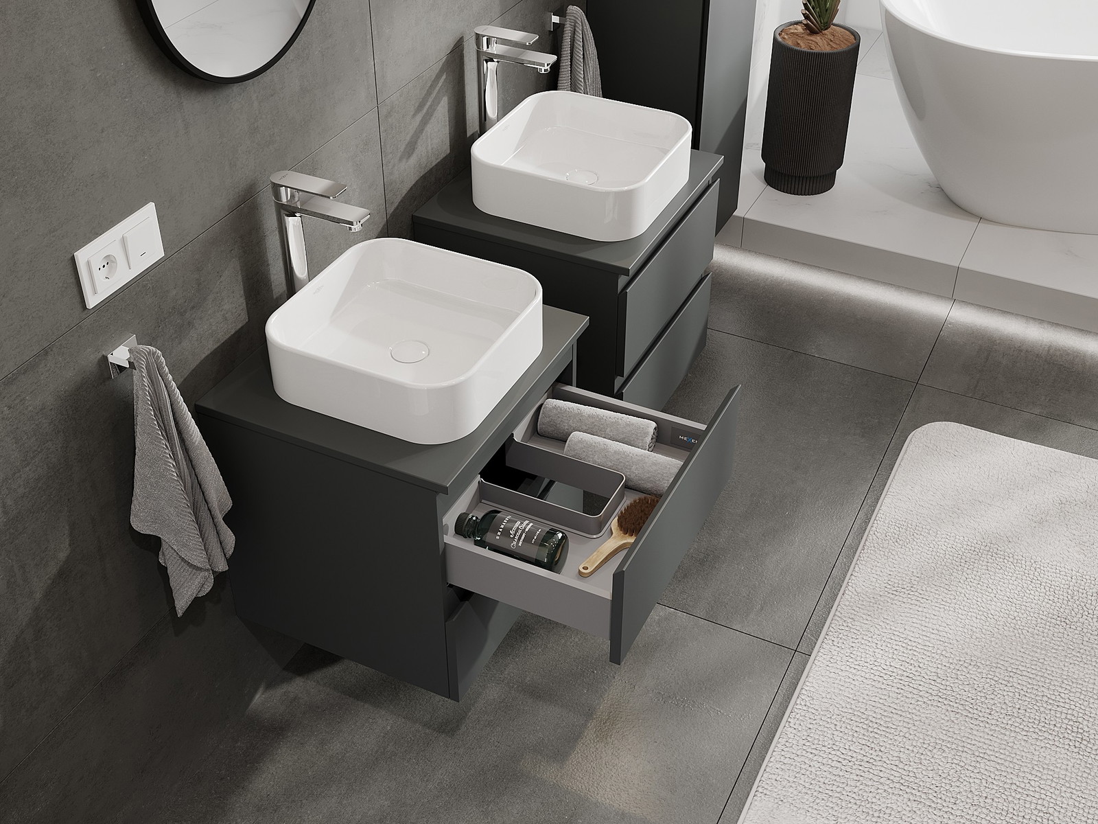 Mexen Orio kylpyhuonekaappi pesualtaan alle 50 cm, työtaso, 2 laatikkoa, matta grafiitti - 91A10-05047-2-BFFC66