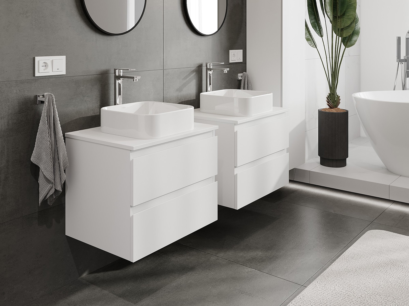 Modulaariset kylpyhuonekalusteemme voidaan yhdistää eri väriyhdistelminä, mikä mahdollistaa täydellisen personoinnin. Voit valita sekä ulkonäön että yksittäisten elementtien toiminnot, mikä mahdollistaa huonekalujen mukauttamisen omien tyylillisten ja käyttöön liittyvien mieltymysten mukaan.