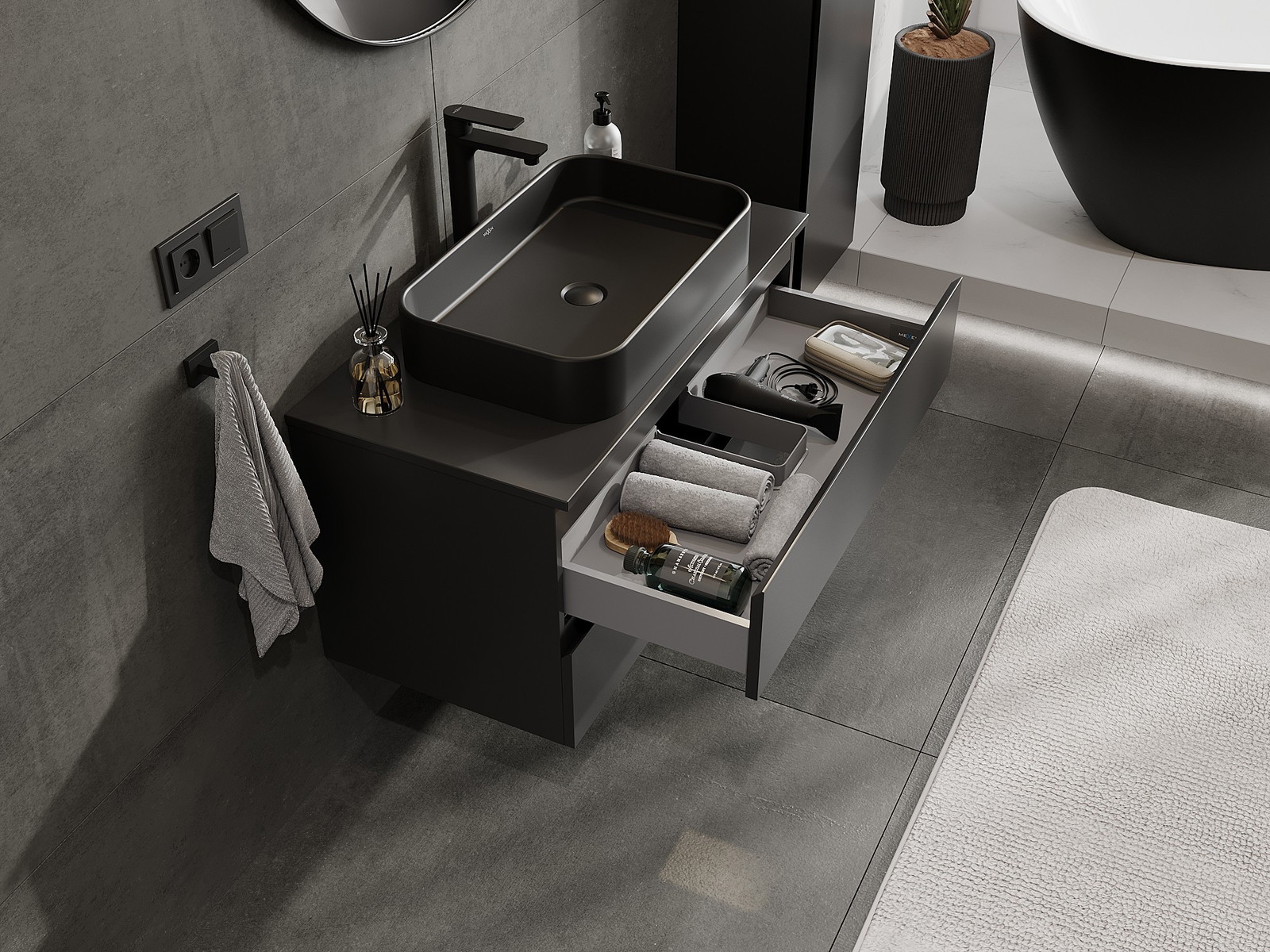 Kiinteiden materiaalien, tarkan työn ja nykyaikaisten teknologisten ratkaisujen ansiosta tuote tarjoaa käyttömukavuutta, kestävyyttä kosteutta ja lämpötilan muutoksia vastaan sekä elegantin ulkonäön, joka sopii erilaisiin kylpyhuonetyyleihin.
