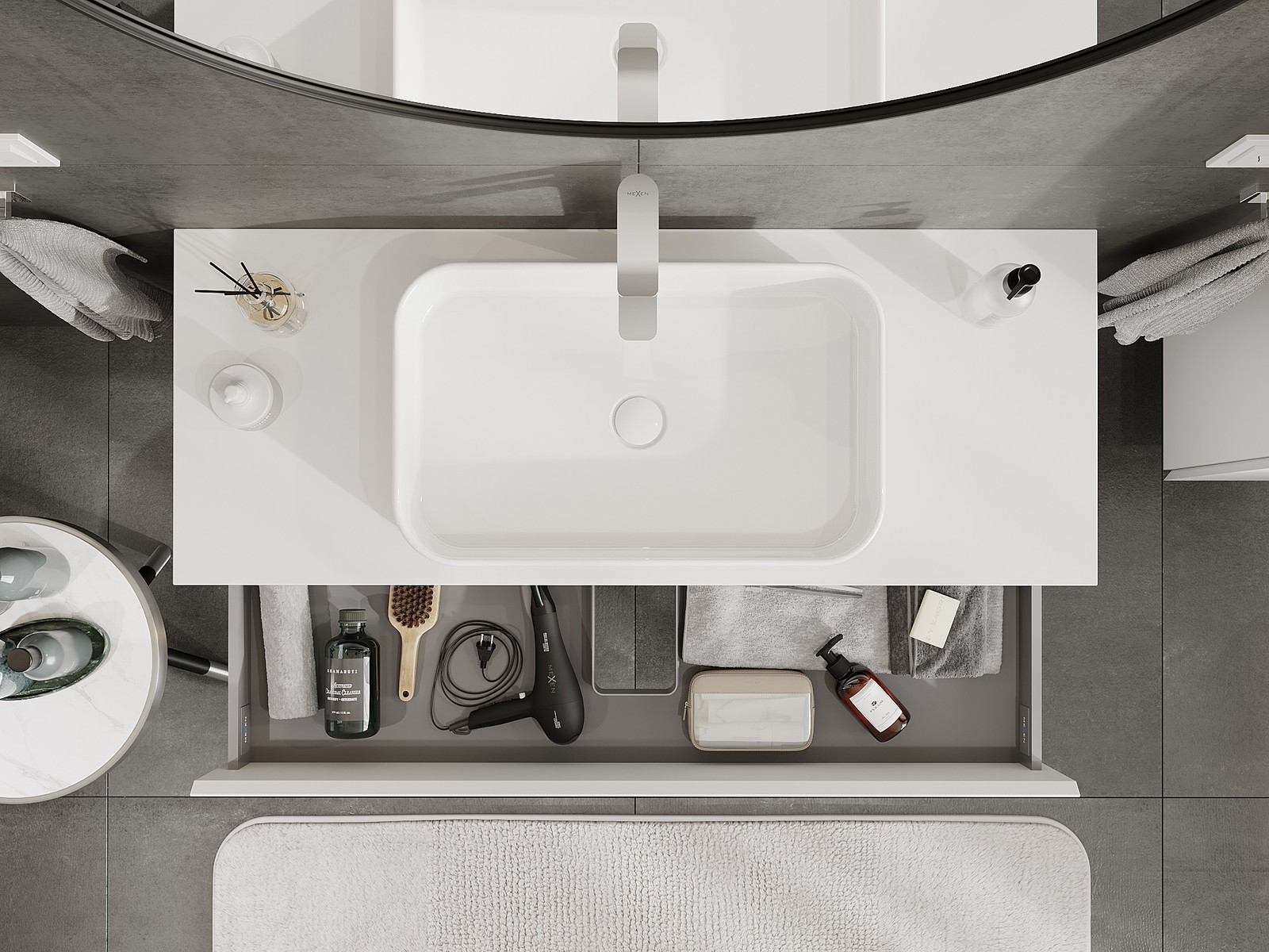 Kiinteiden materiaalien, tarkan työn ja nykyaikaisten teknologisten ratkaisujen ansiosta tuote tarjoaa käyttömukavuutta, kestävyyttä kosteutta ja lämpötilan muutoksia vastaan sekä elegantin ulkonäön, joka sopii erilaisiin kylpyhuonetyyleihin.