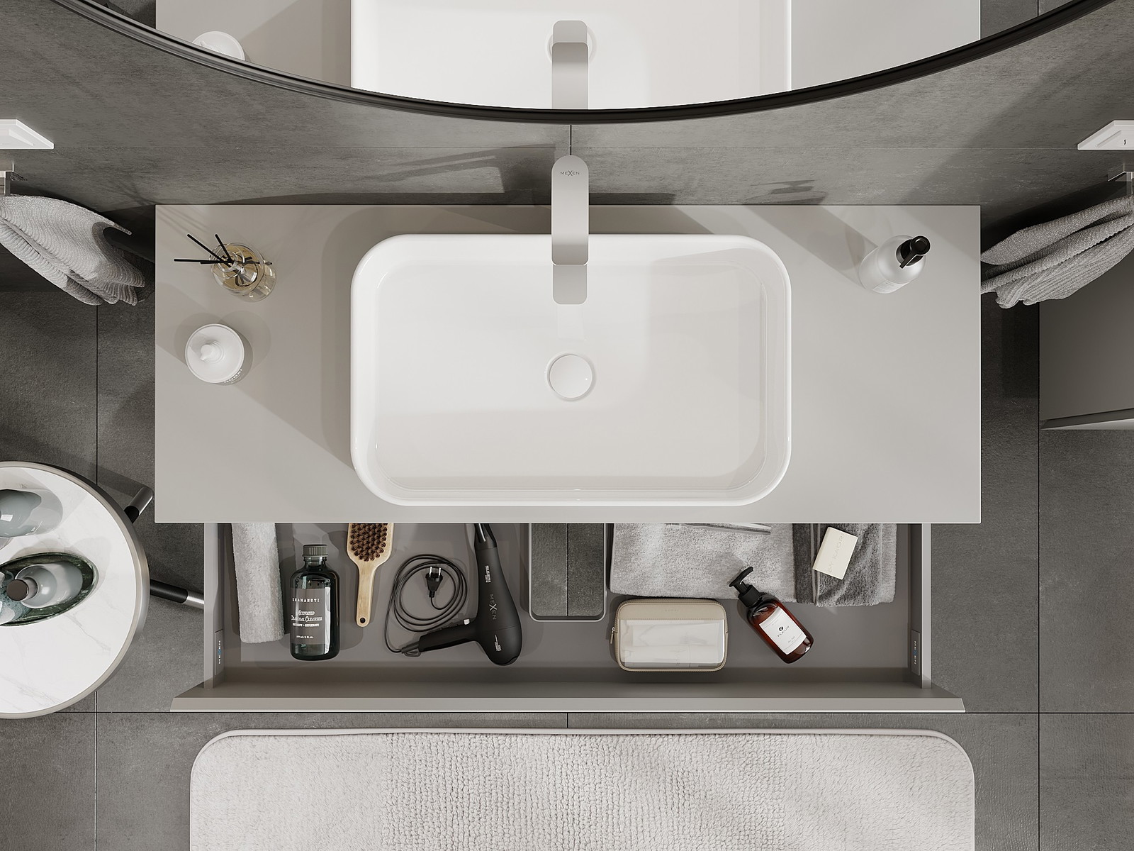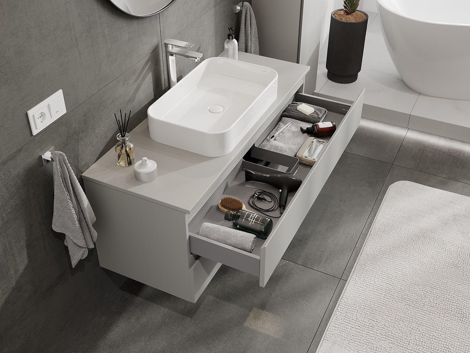 Modulaariset kylpyhuonekalusteemme voidaan yhdistää eri väriyhdistelminä, mikä mahdollistaa täydellisen personoinnin. Voit valita sekä ulkonäön että yksittäisten elementtien toiminnot, mikä mahdollistaa huonekalujen mukauttamisen omien tyylillisten ja käyttöön liittyvien mieltymysten mukaan.