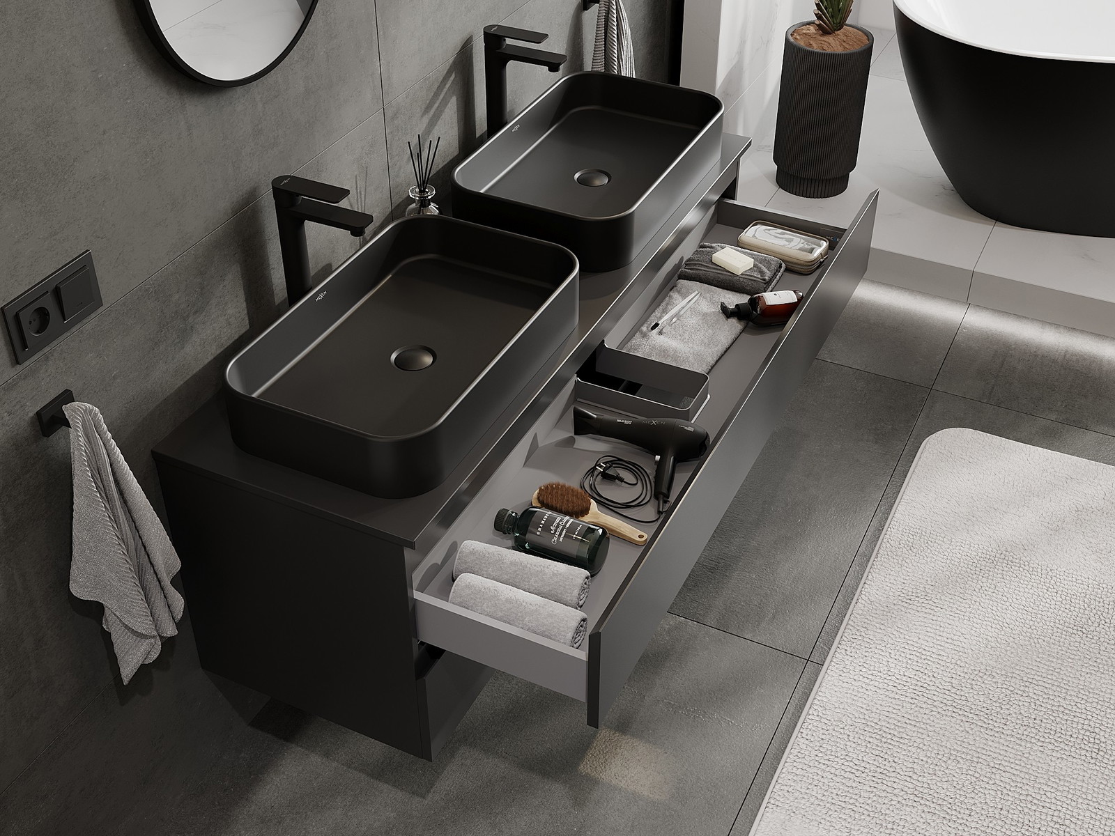 Kiinteiden materiaalien, tarkan työn ja nykyaikaisten teknologisten ratkaisujen ansiosta tuote tarjoaa käyttömukavuutta, kestävyyttä kosteutta ja lämpötilan muutoksia vastaan sekä elegantin ulkonäön, joka sopii erilaisiin kylpyhuonetyyleihin.