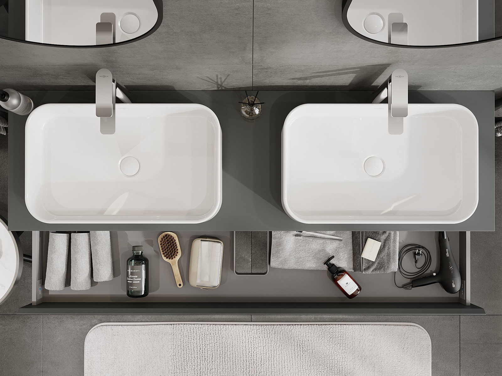 Kiinteiden materiaalien, tarkan työn ja nykyaikaisten teknologisten ratkaisujen ansiosta tuote tarjoaa käyttömukavuutta, kestävyyttä kosteutta ja lämpötilan muutoksia vastaan sekä elegantin ulkonäön, joka sopii erilaisiin kylpyhuonetyyleihin.