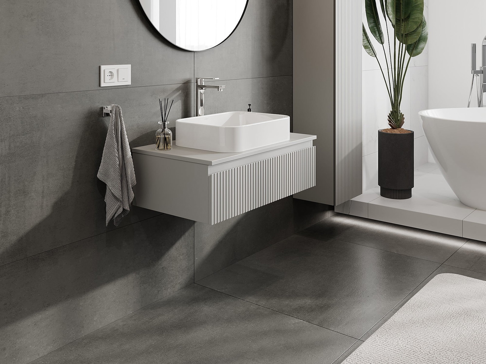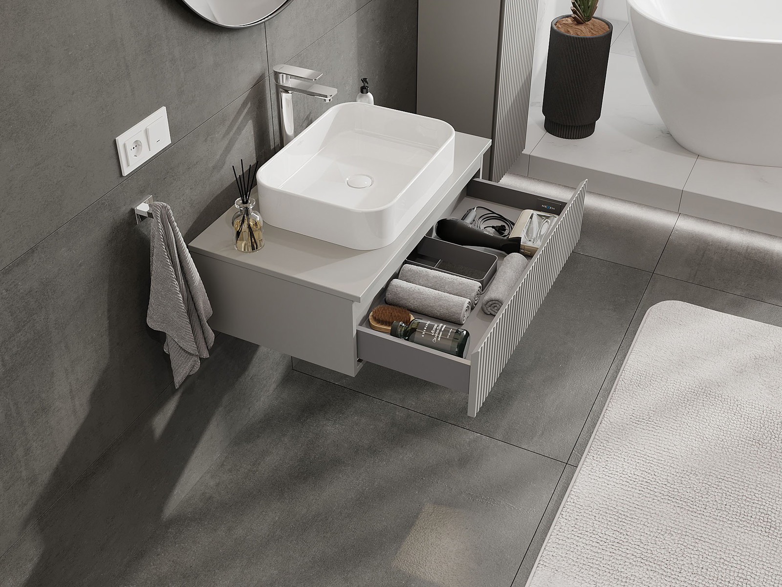 Mexen Rivel kylpyhuonekaappi pesualtaan alle, 80 cm, tasolla, 1 laatikko, uurrettu, harmaa matta - 91A20-08023-1-BFC62