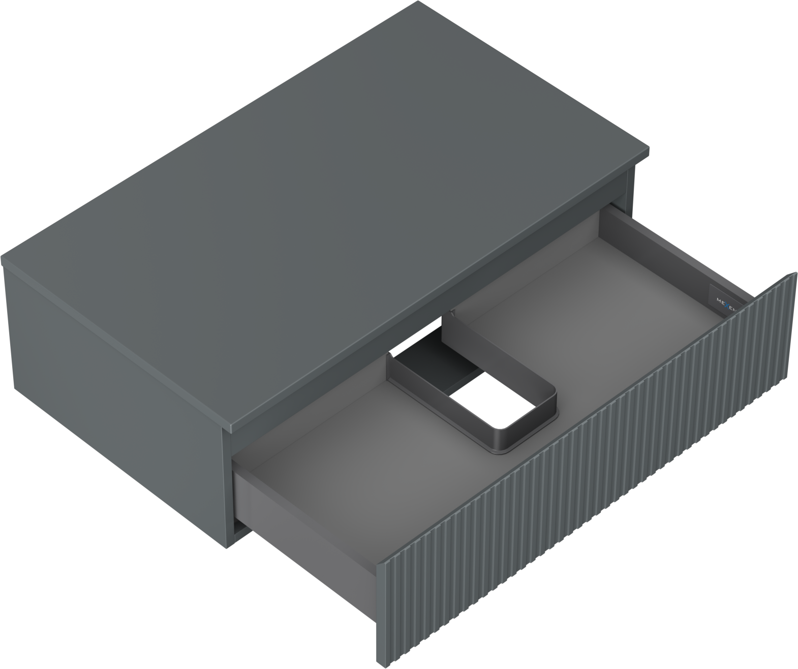 Laatikon leikkaus on suunniteltu siten, että se mahtuu vetolaitteeseen, joka on välttämätön pesuallasasennuksissa. Tämän ansiosta huonekalu voidaan asentaa täysin toimivasti, luopumatta laatikon tilasta asennusten hyväksi.
