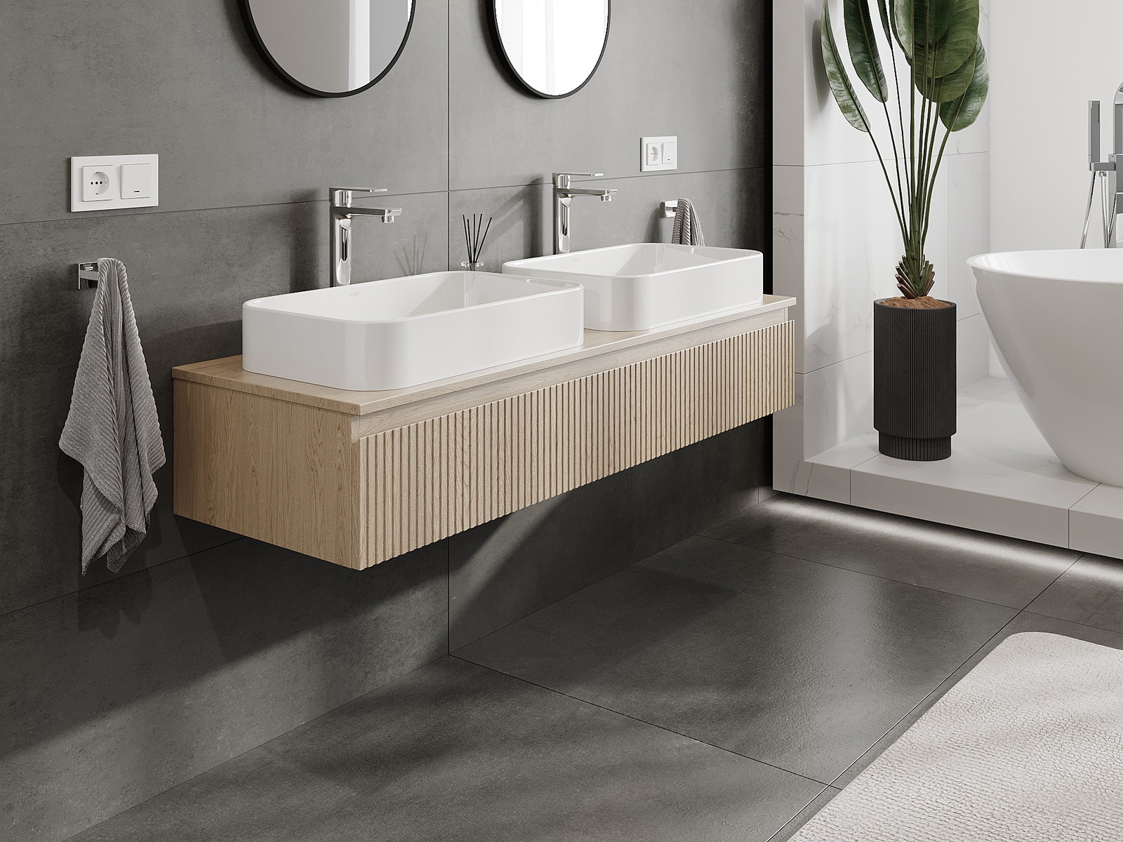 Kiinteiden materiaalien, tarkan työn ja nykyaikaisten teknologisten ratkaisujen ansiosta tuote tarjoaa käyttömukavuutta, kestävyyttä kosteutta ja lämpötilan muutoksia vastaan sekä elegantin ulkonäön, joka sopii erilaisiin kylpyhuonetyyleihin.