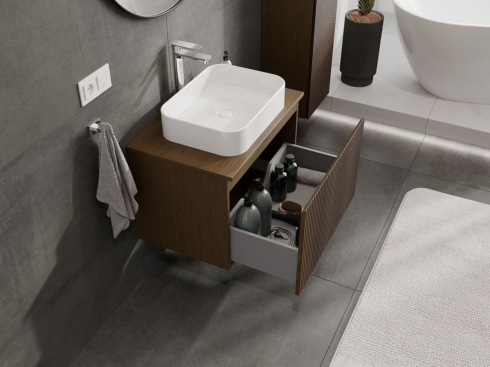 Mexen Rivel kylpyhuonekaappi, 70 cm, työtasolla, 1 laatikko, uurrettu, pähkinä - 91A20-07047-1-BFC86