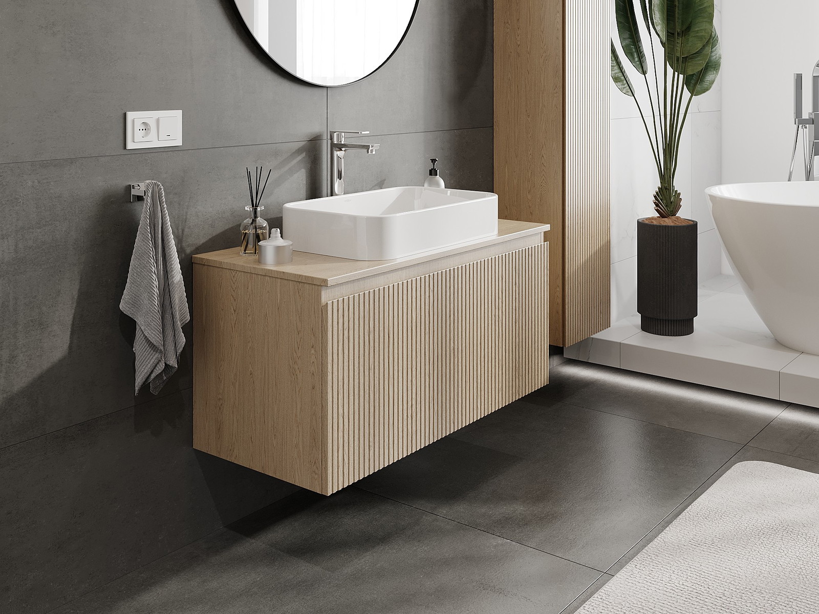 Kiinteiden materiaalien, tarkan työn ja nykyaikaisten teknologisten ratkaisujen ansiosta tuote tarjoaa käyttömukavuutta, kestävyyttä kosteutta ja lämpötilan muutoksia vastaan sekä elegantin ulkonäön, joka sopii erilaisiin kylpyhuonetyyleihin.