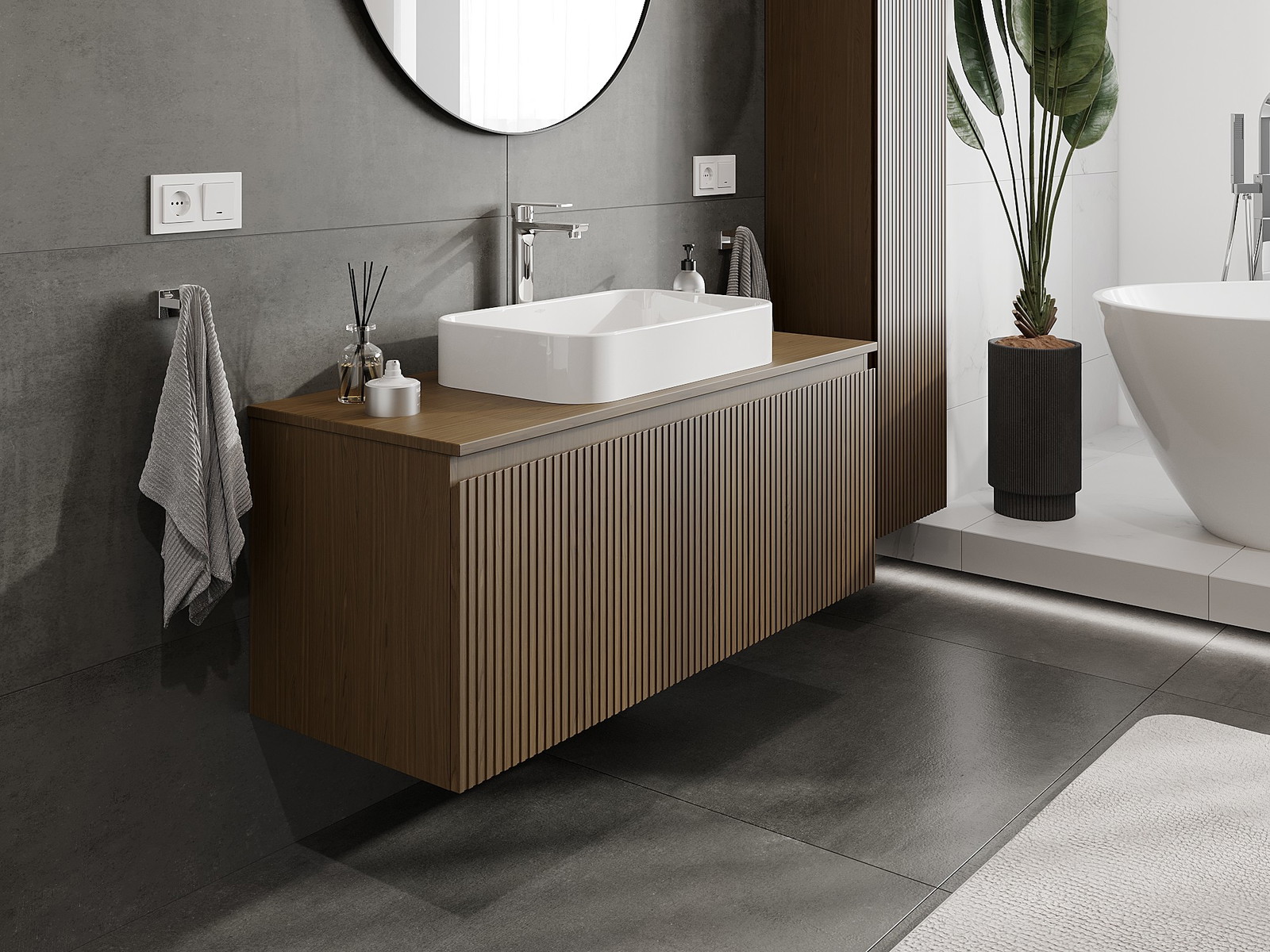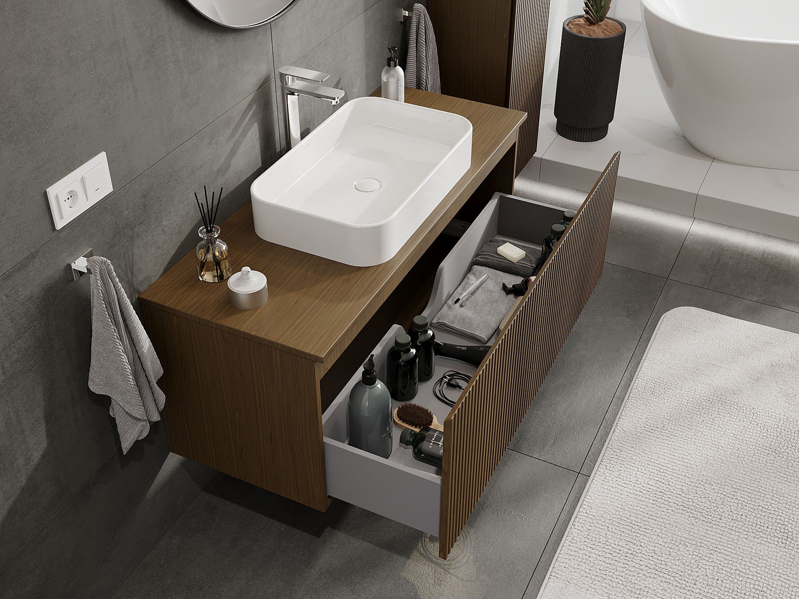 Mexen Rivel kylpyhuonekaappi pesualtaan alla 120 cm, 1 laatikko, uurrettu, pähkinä - 91A20-12047-1-BFC86