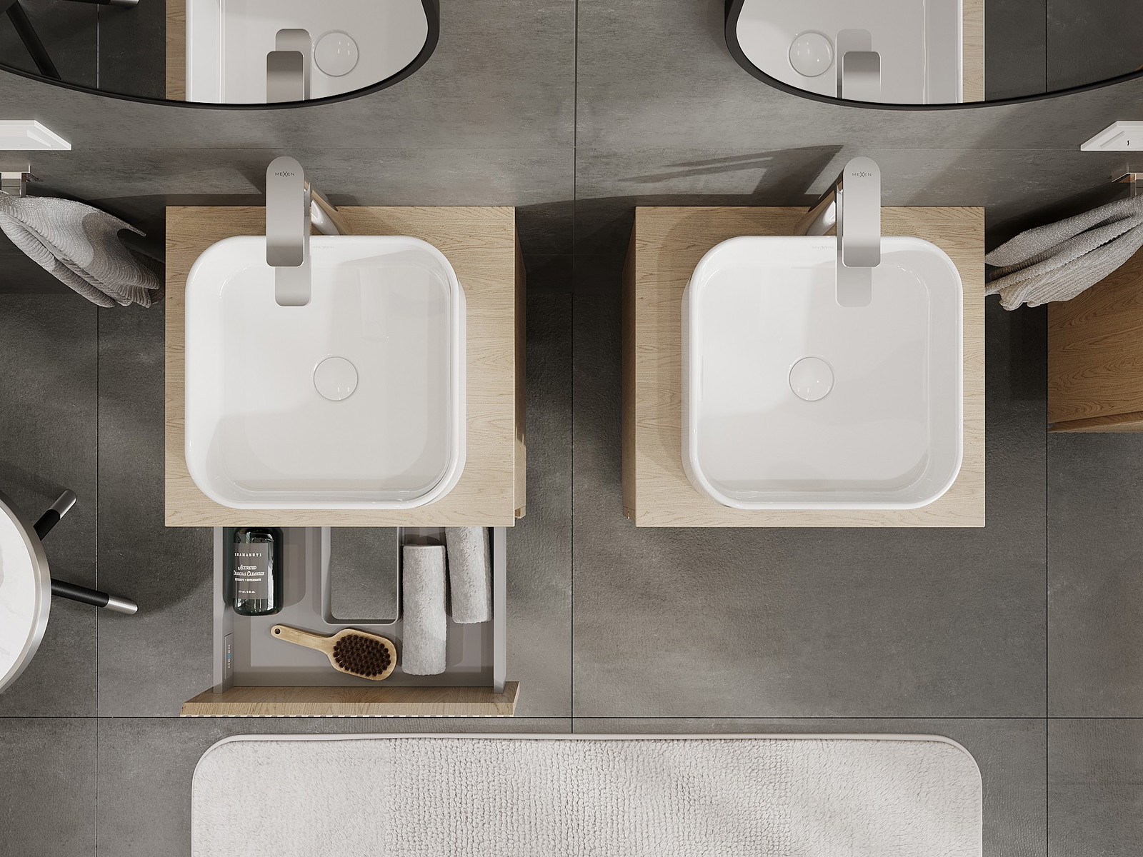 Mexen Rivel kylpyhuoneen allaskaappi 50 cm tasolla, 2 laatikkoa, uurrettu, tammi - 91A20-05047-2-BFFC81