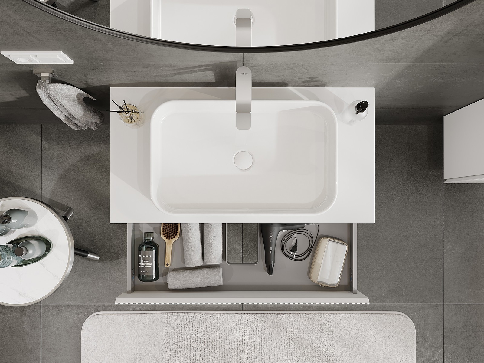 Kiinteiden materiaalien, tarkan työn ja nykyaikaisten teknologisten ratkaisujen ansiosta tuote tarjoaa käyttömukavuutta, kestävyyttä kosteutta ja lämpötilan muutoksia vastaan sekä elegantin ulkonäön, joka sopii erilaisiin kylpyhuonetyyleihin.