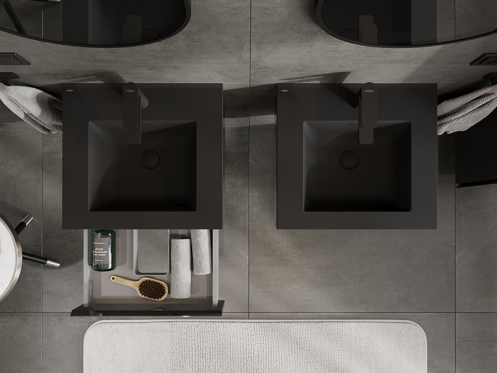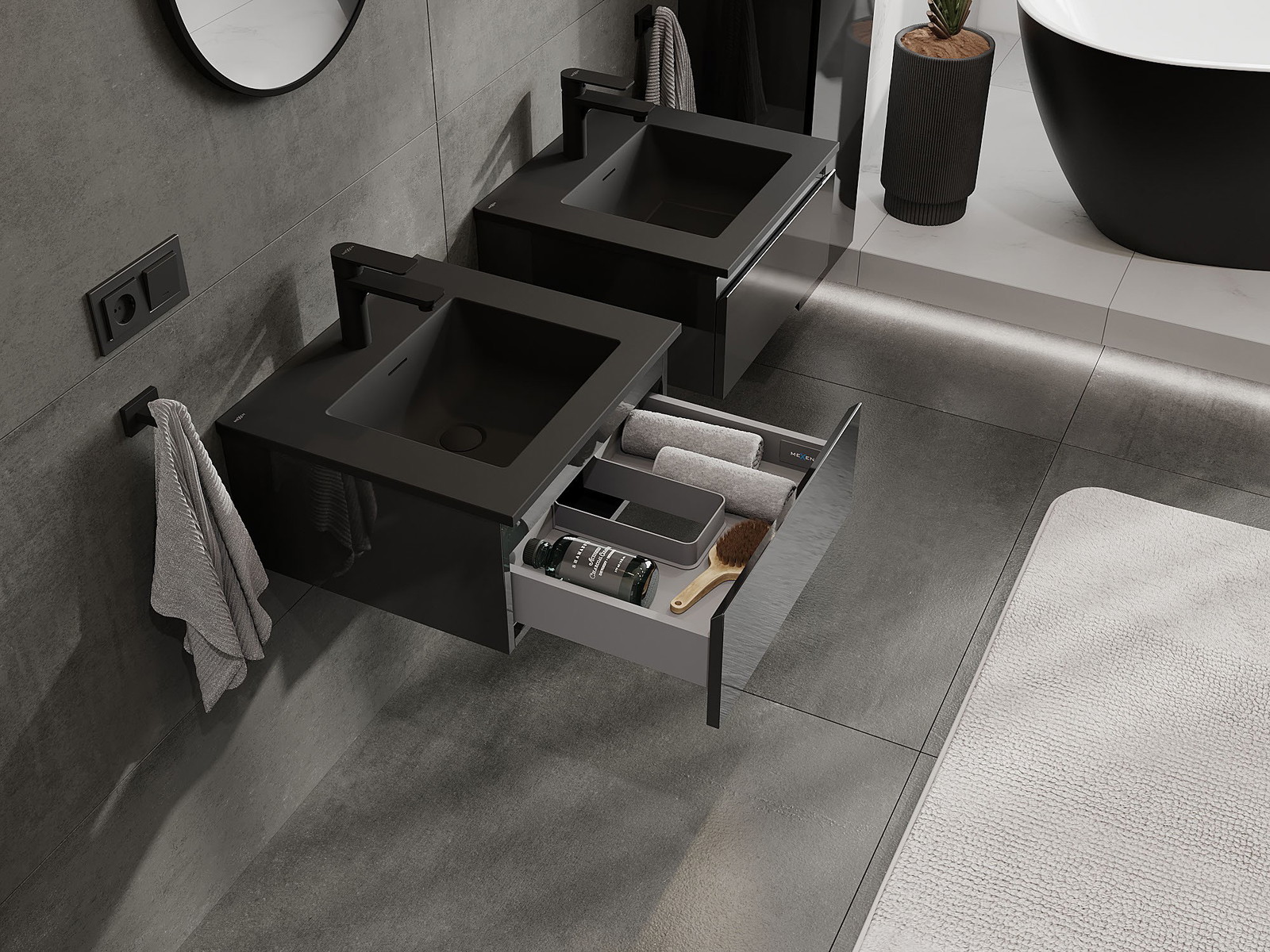 Mexen Orio kylpyhuonekaappi 50 cm pesualtaalla Otis, 1 laatikko, musta kiilto/matta musta - 91A10-05023-1-BF70-W18M71