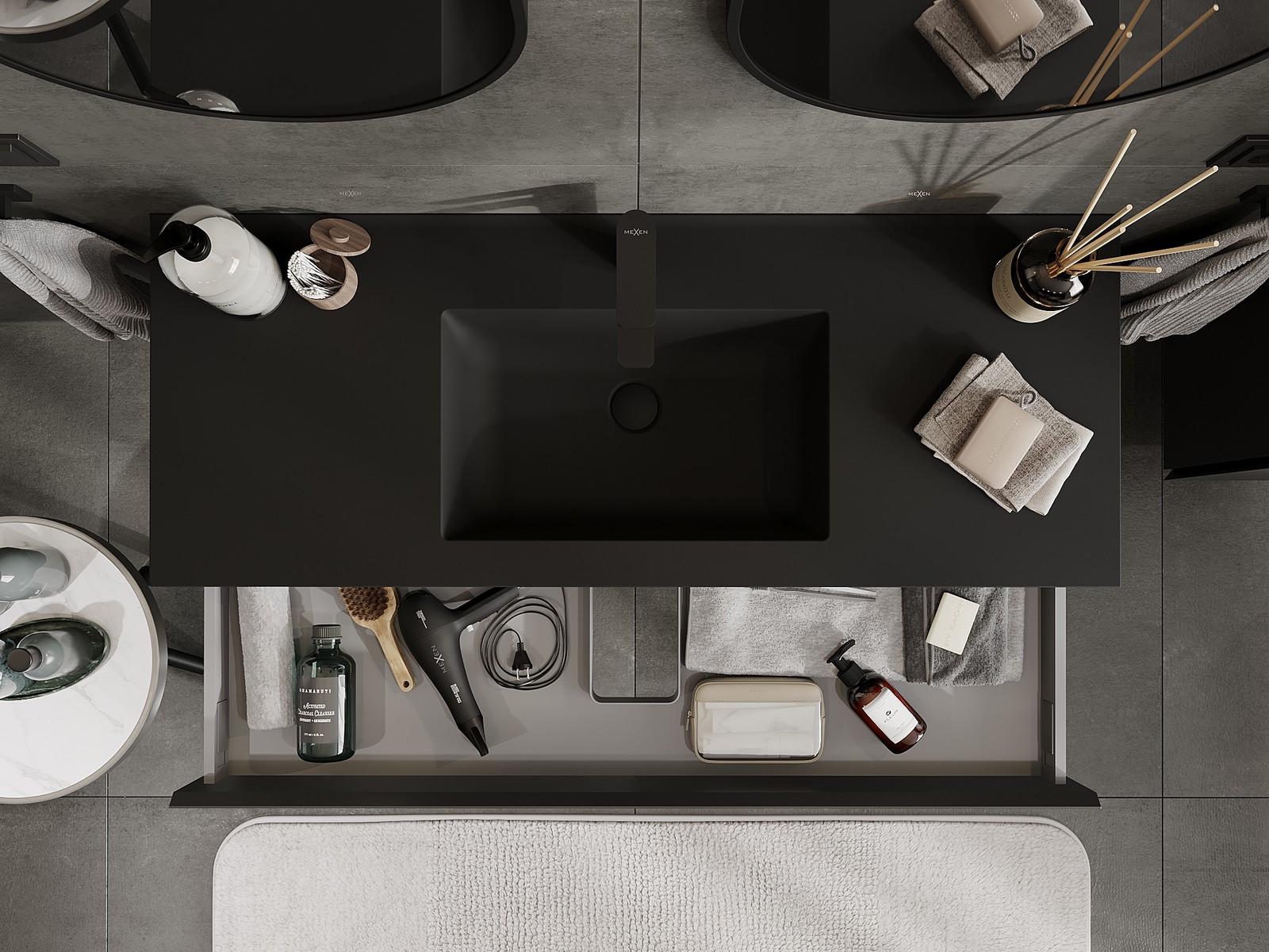 Mexen Orio kylpyhuonekaappi 120 cm altaalla Otis, 1 laatikko, musta matta - 91A10-12023-1-BF71-W18M71