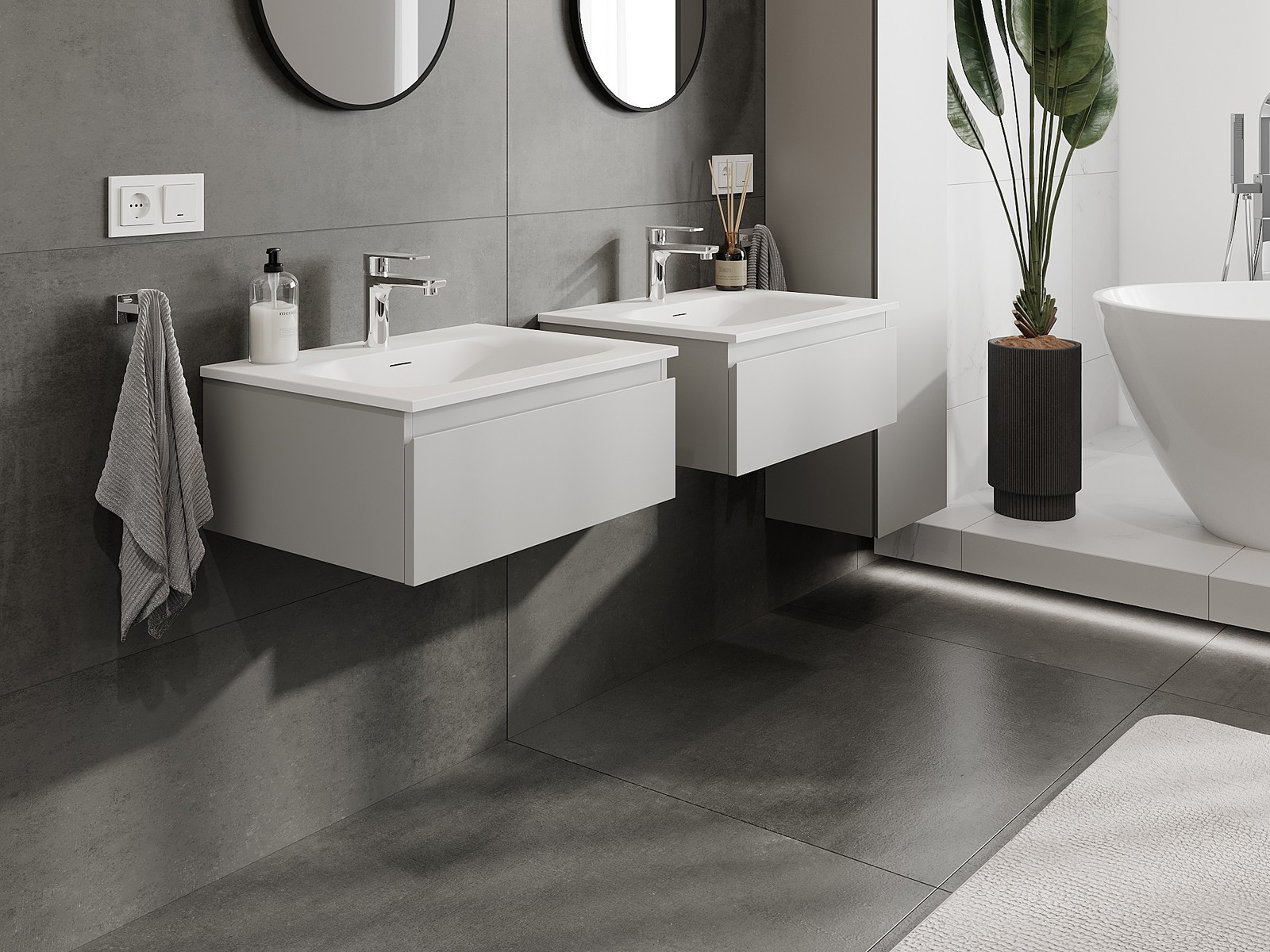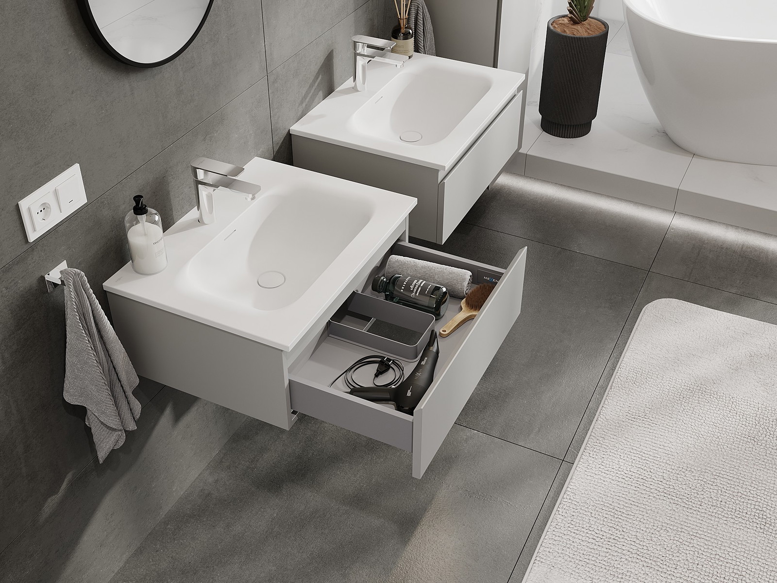 Modulaariset kylpyhuonekalusteemme voidaan yhdistää eri väriyhdistelminä, mikä mahdollistaa täydellisen personoinnin. Voit valita sekä ulkonäön että yksittäisten elementtien toiminnot, mikä mahdollistaa huonekalujen mukauttamisen omien tyylillisten ja käyttöön liittyvien mieltymysten mukaan.
