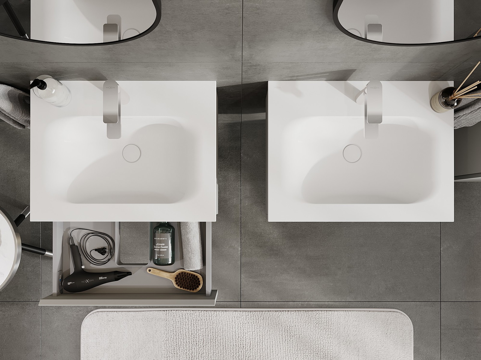 Mexen Orio kylpyhuonekaappi 60 cm pesualtaalla Vela, 1 laatikko, harmaa matta/valkoinen matta - 91A10-06023-1-BF62-W23M01