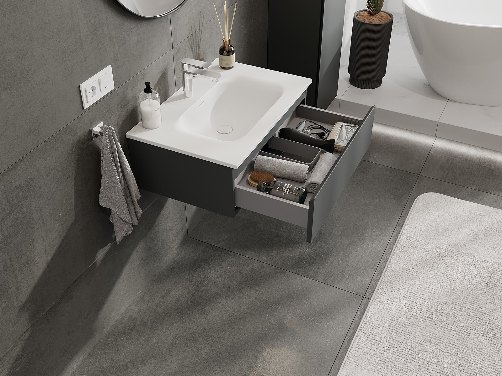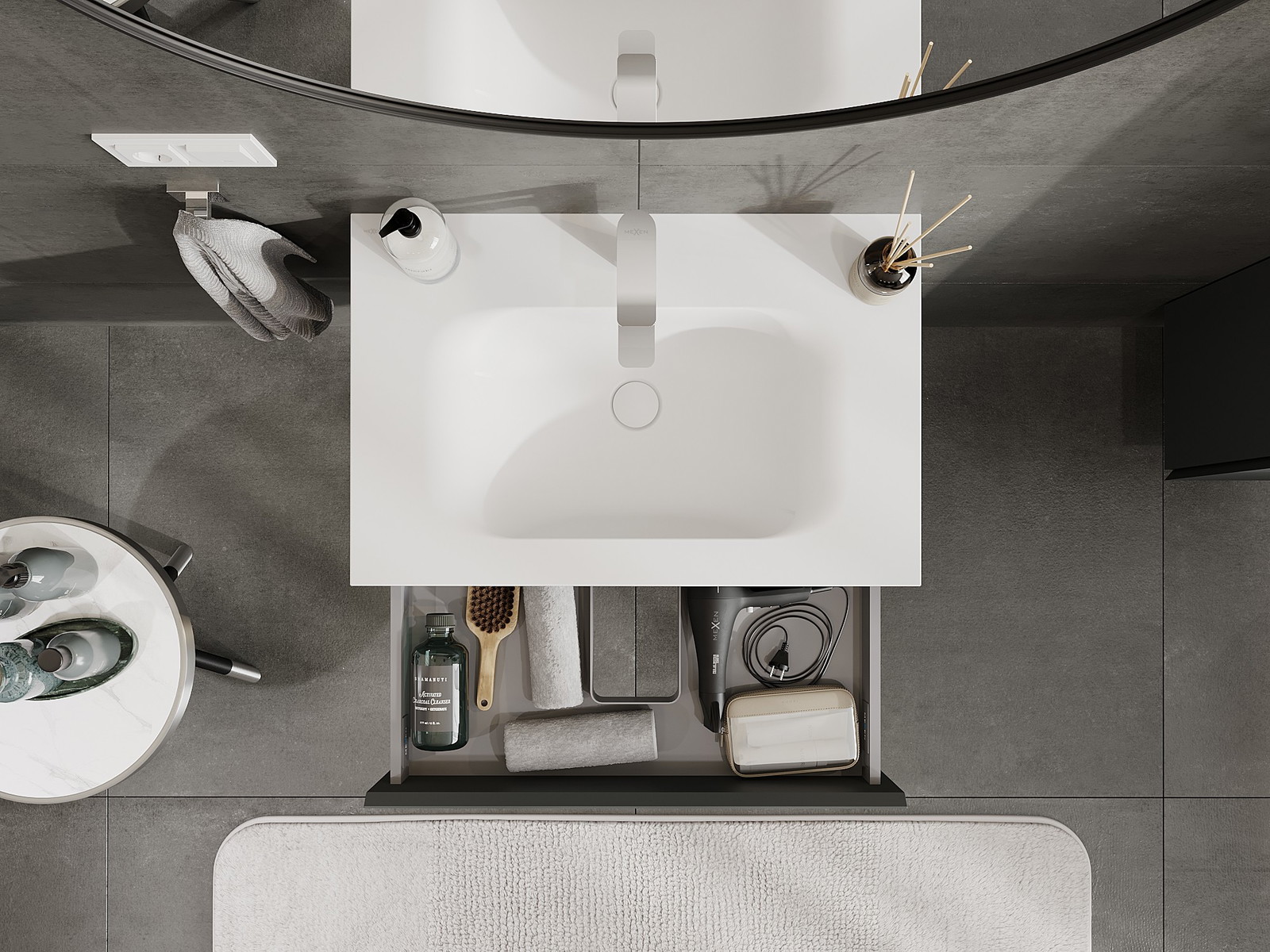 Mexen Orio kylpyhuonekaappi 70 cm pesualtaalla Vela, 1 laatikko, grafiitinharmaa matta/valkoinen matta