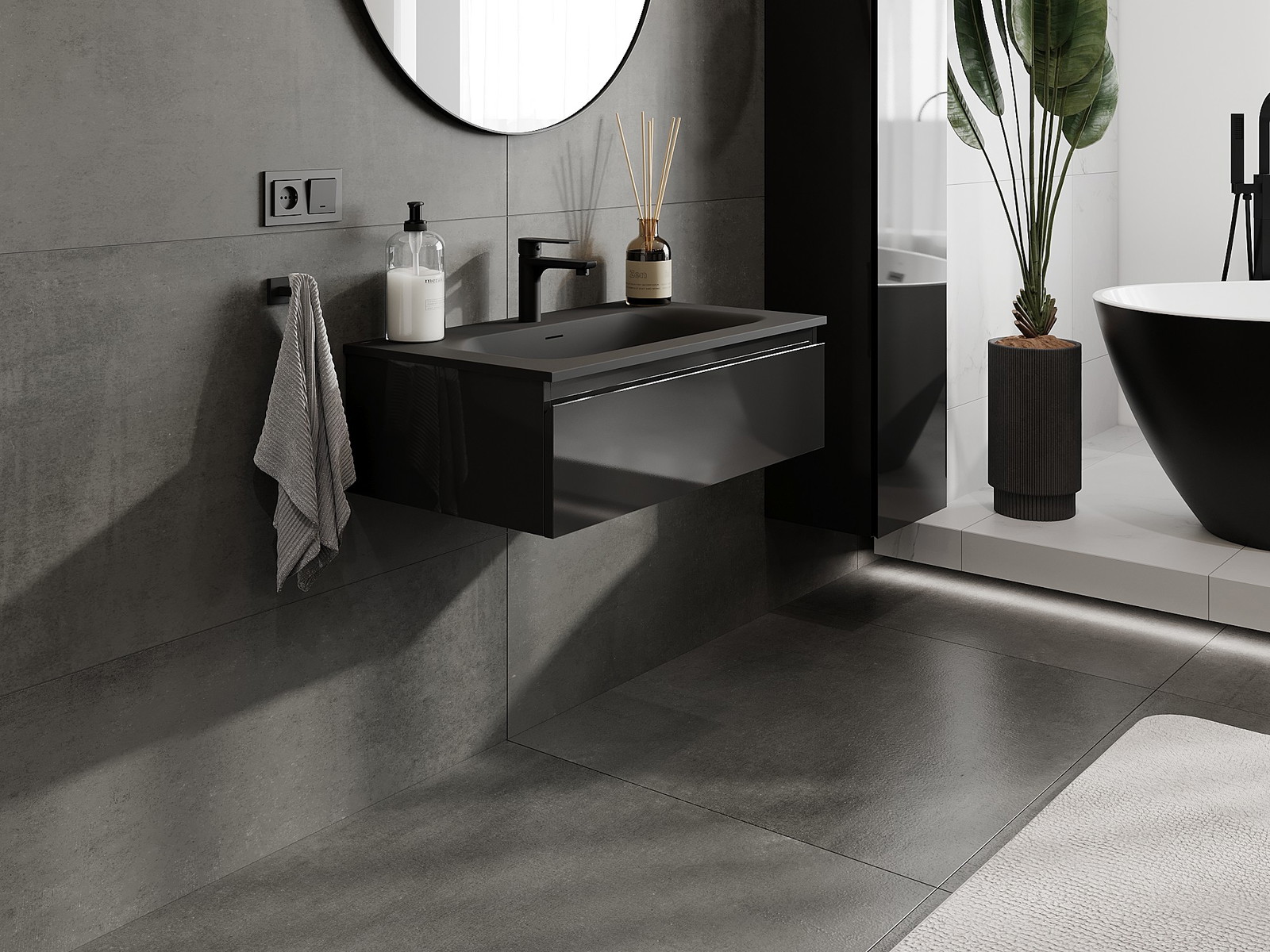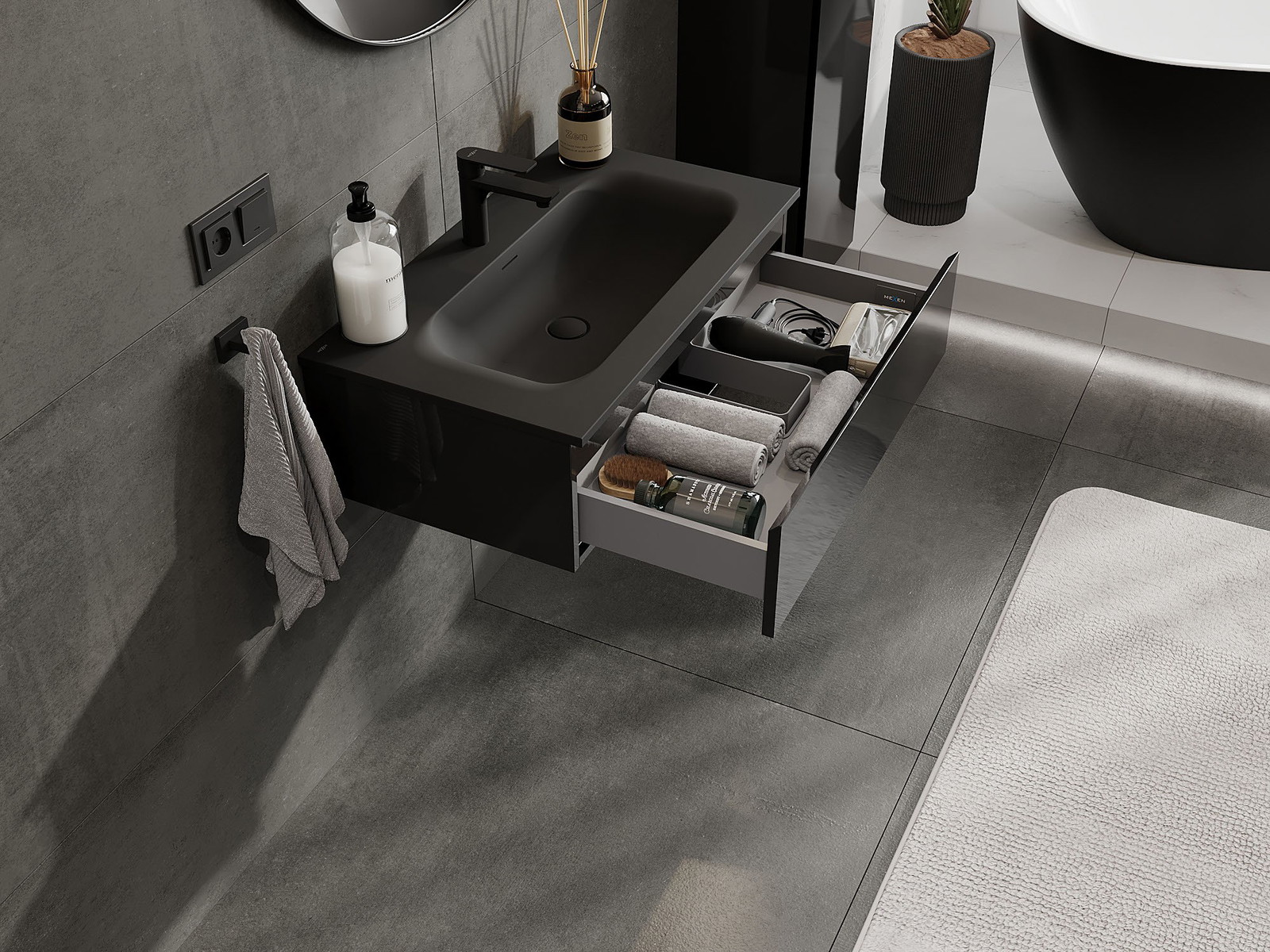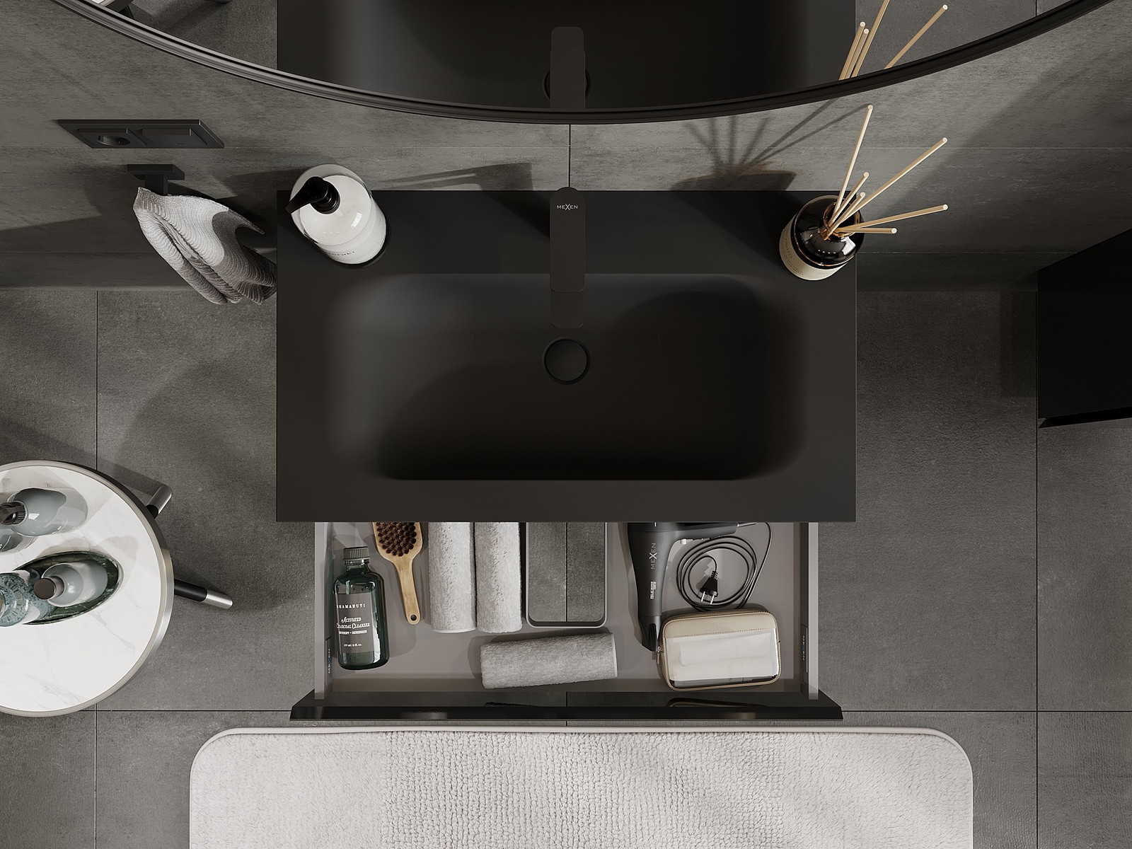 Mexen Orio 80 cm kylpyhuonekaappi pesualtaalla Vela, 1 laatikko, musta kiiltävä/matta musta - 91A10-08023-1-BF70-W23M71