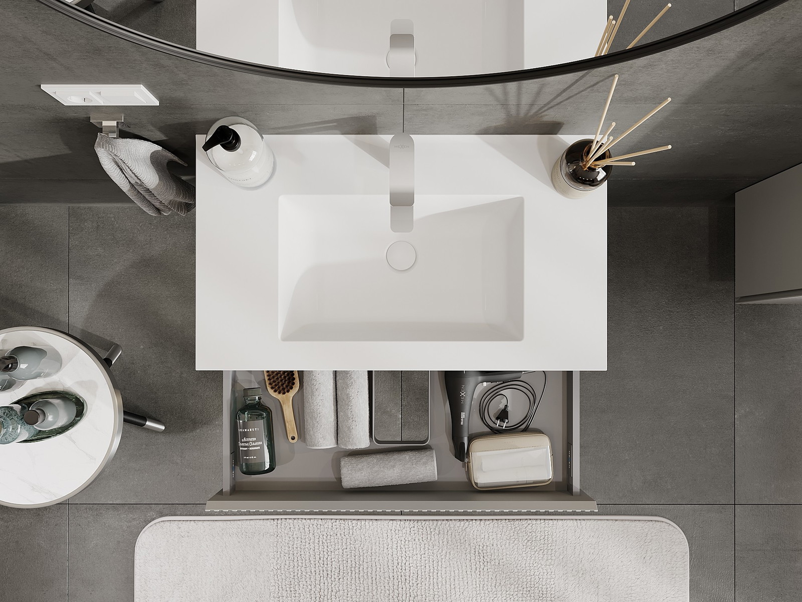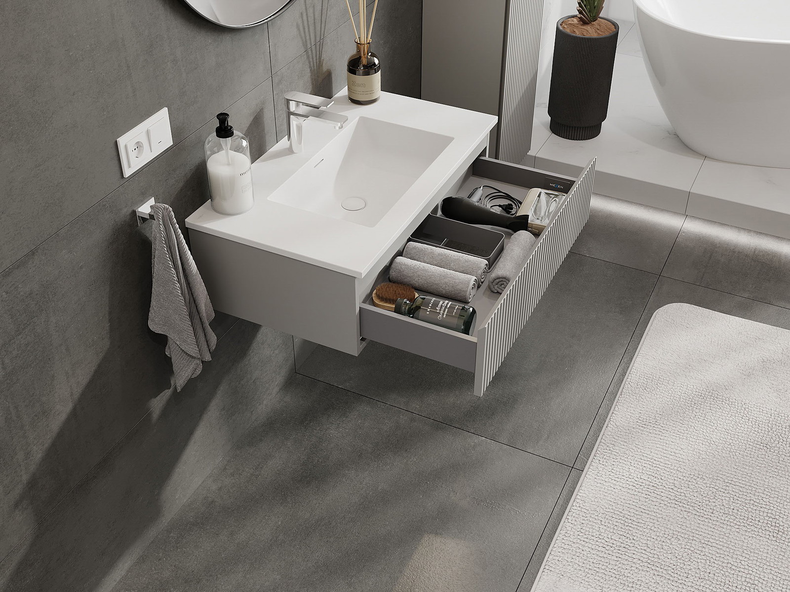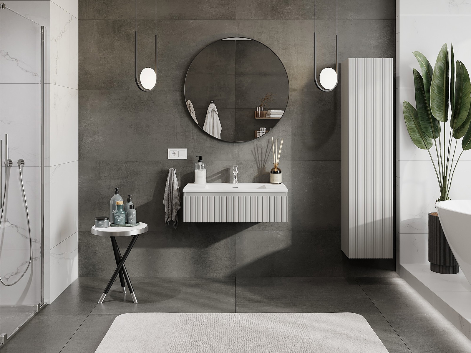 Mexen Rivel kylpyhuonekaappi 80 cm pesualtaalla Otis, 1 laatikko, uritettu, harmaa matta/valkoinen matta