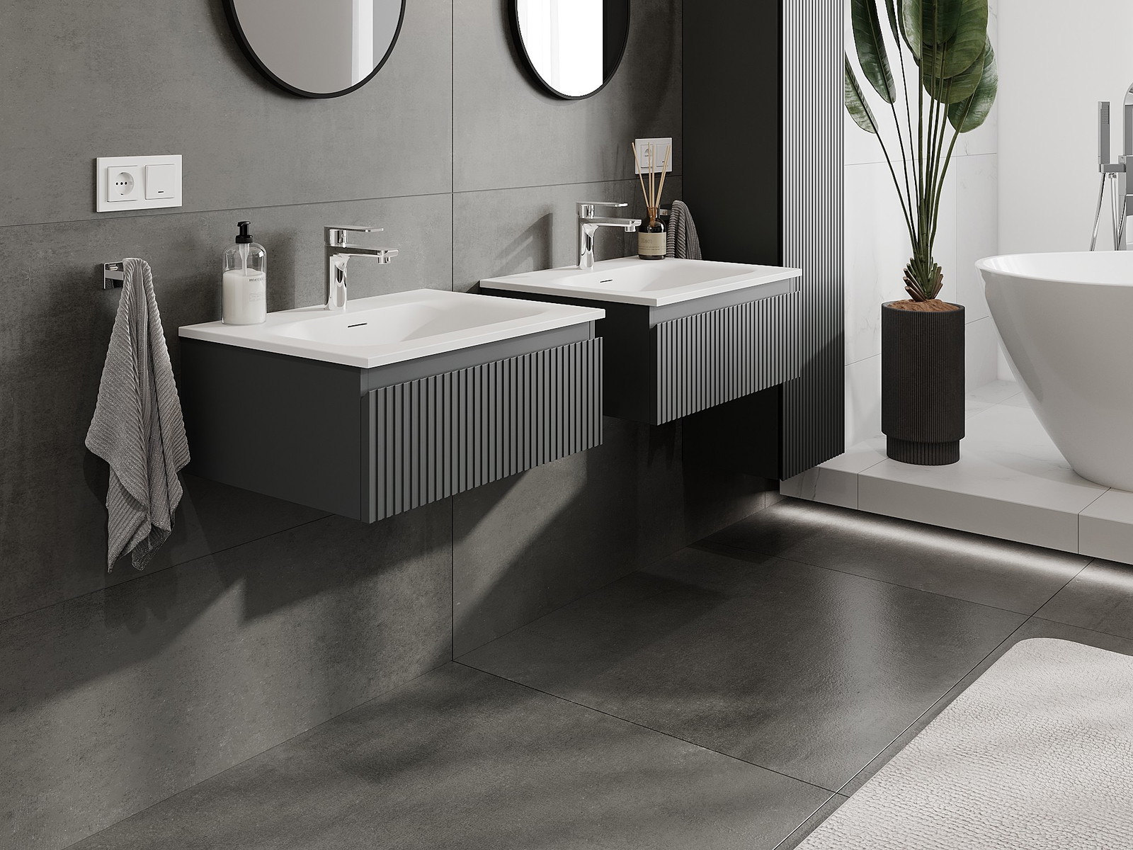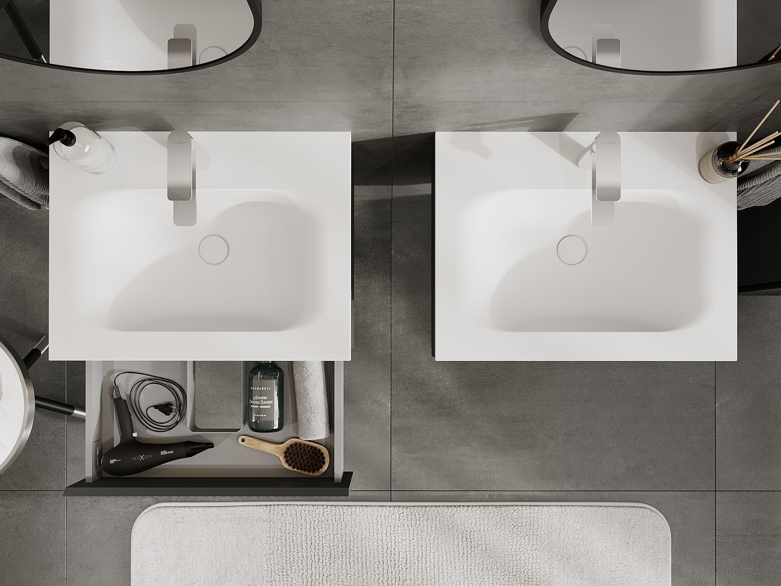 Mexen Rivel kylpyhuonekaappi 60 cm pesualtaalla Vela, 1 laatikko, uurrettu, grafiitin mattapintainen/valkoinen mattapinta