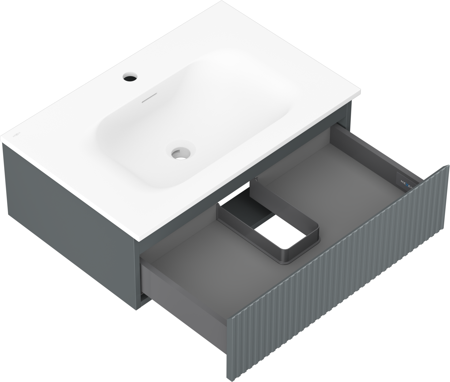 Mexen Rivel 70 cm kylpyhuonekaappi pesualtaalla Vela, 1 laatikko, uurrettu, grafiitin mattavalkoinen - 91A20-07023-1-BF66-W23M01