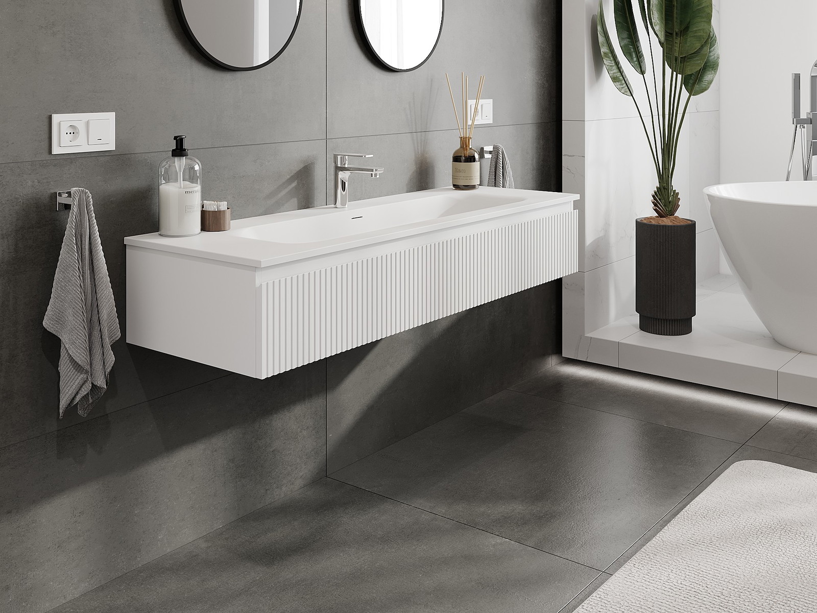 Mexen Rivel kylpyhuonekaappi 140 cm pesualtaalla Vela, 1 laatikko, uurrettu, valkoinen matta - 91A20-14023-1-BF01-W23M01