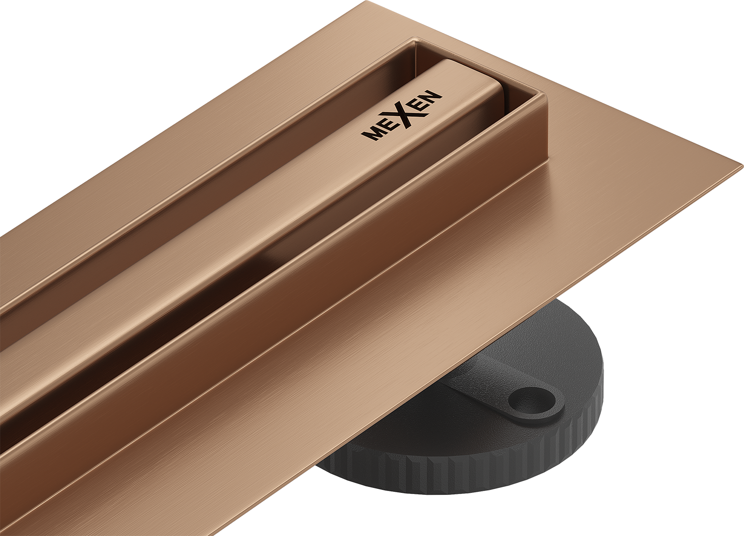 Mexen Flat 360° Slim kääntyvä linjalattiakaivo 100 cm, harjattu kupari - 1C41100