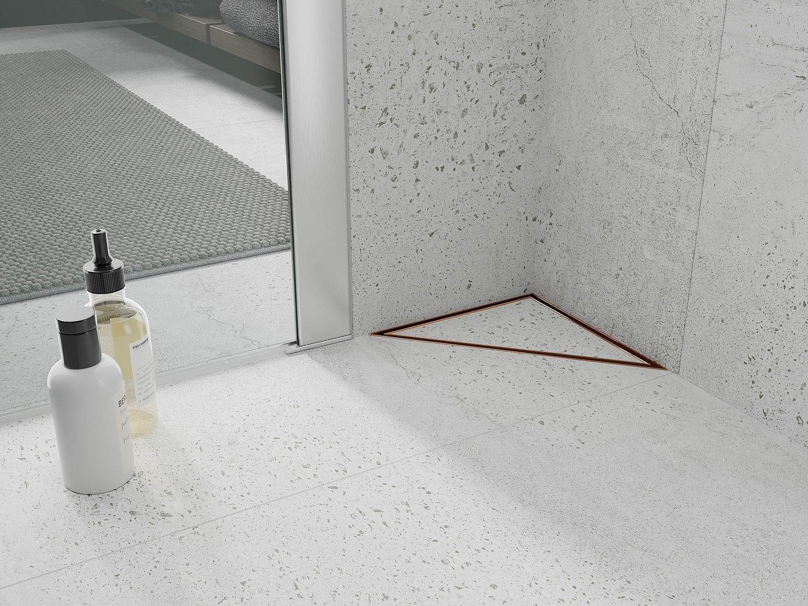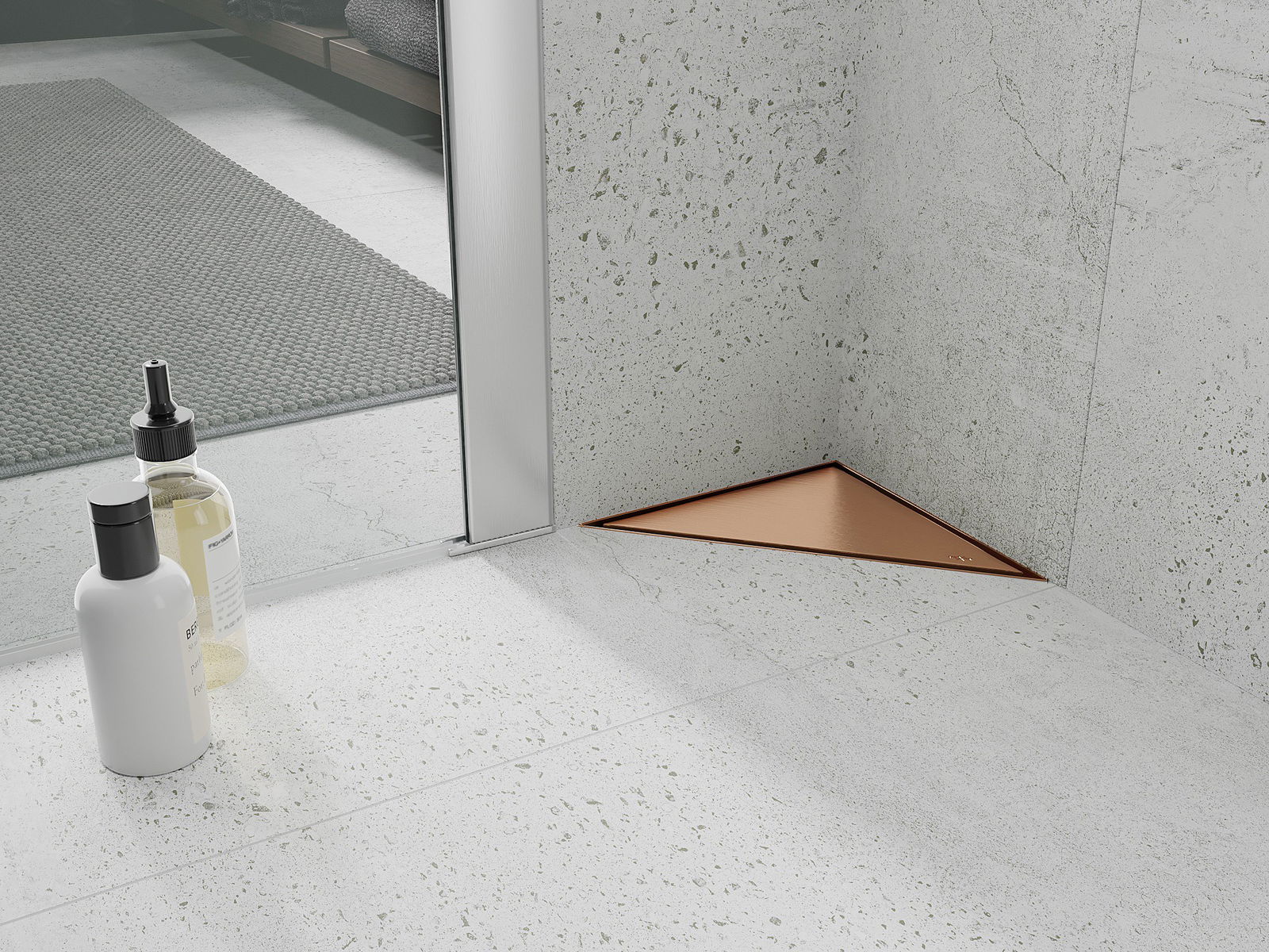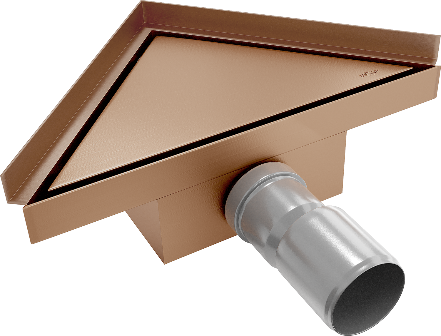 Mexen Flat-T M13 lattiakaivo kolmionmuotoinen 20 x 20 cm, harjattu kupari - 1C10320