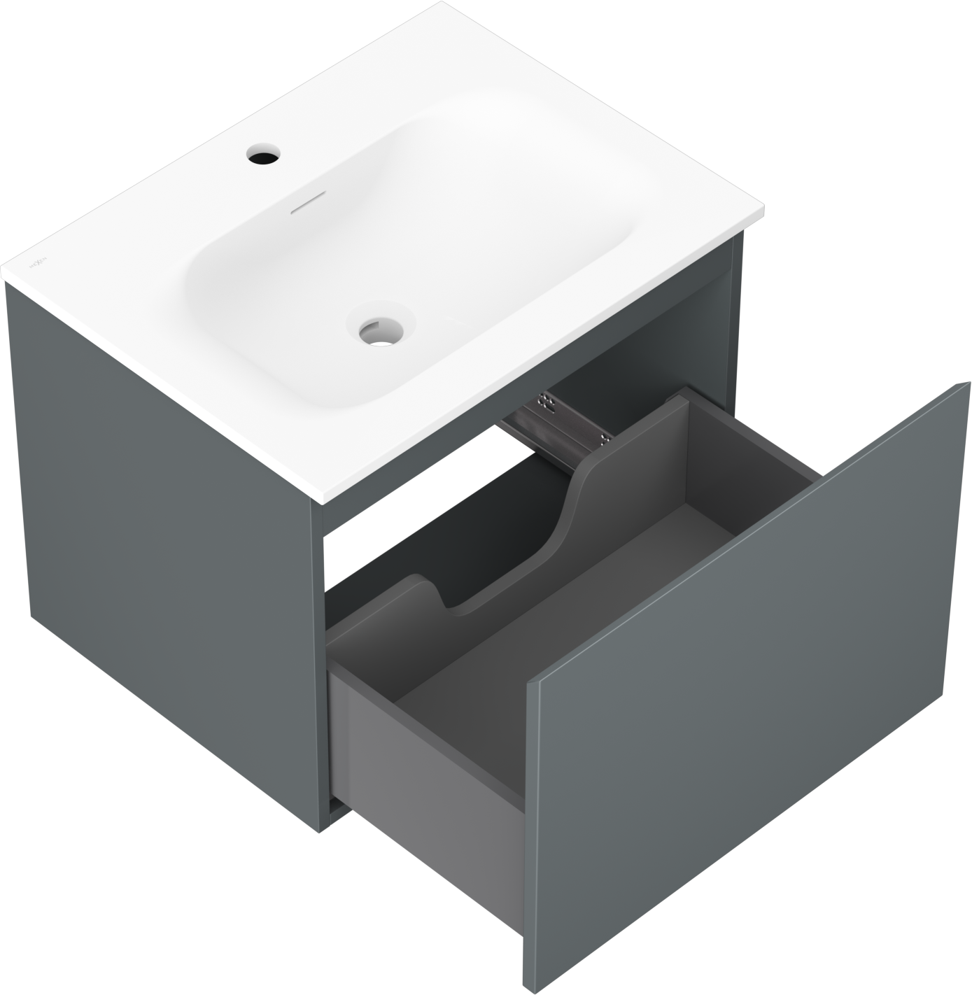Mexen Orio 60 cm kylpyhuoneen kaappi pesualtaalla Vela, 1 laatikko, mattagrafiitti/valkoinen matta - 91A10-06047-1-BF66-W23M01