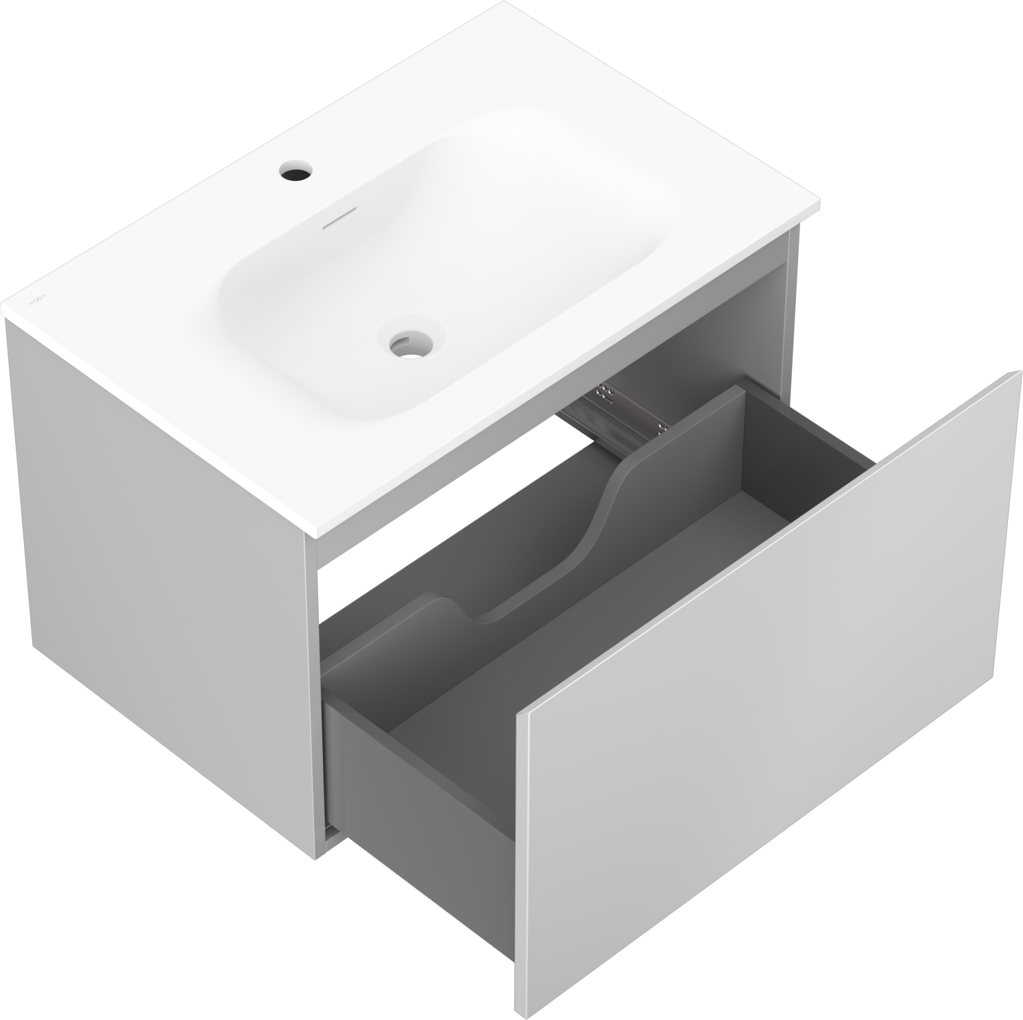 Mexen Orio kylpyhuonekaappi 70 cm pesualtaalla Vela, 1 laatikko, harmaa matta/valkoinen matta - 91A10-07047-1-BF62-W23M01